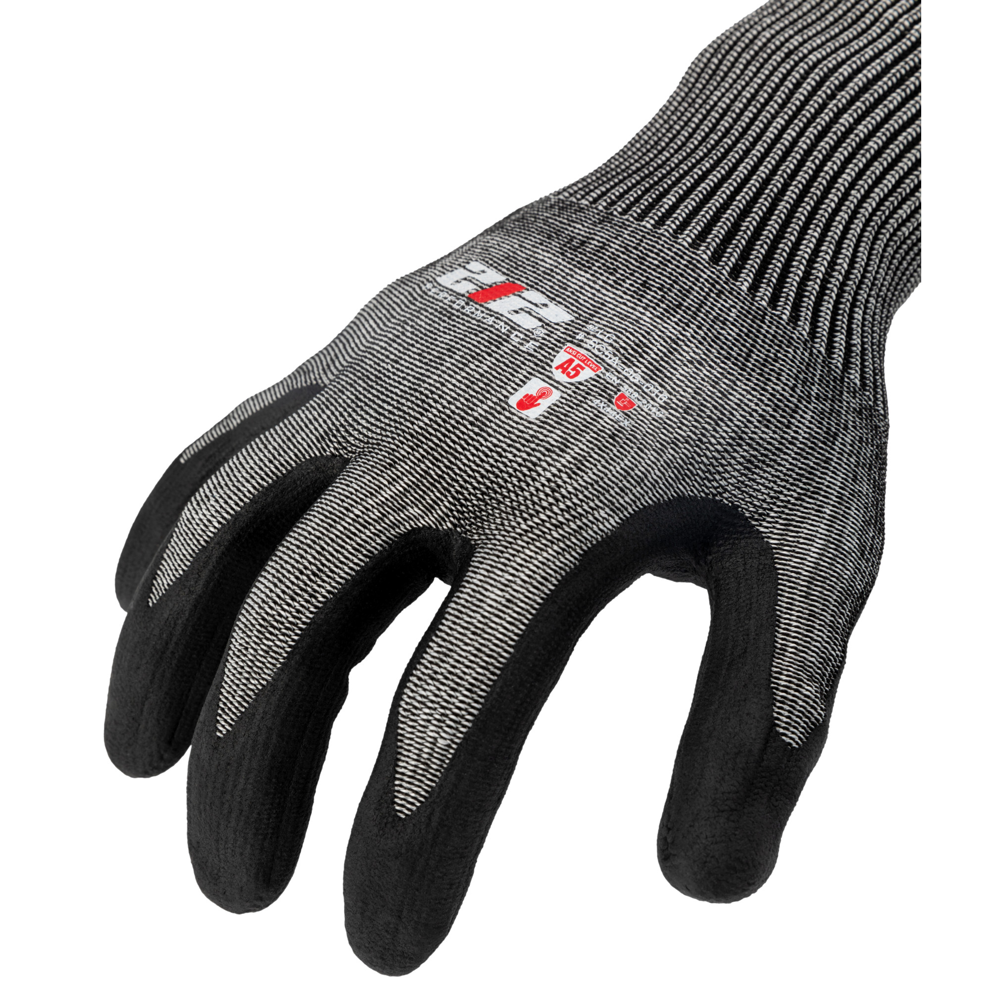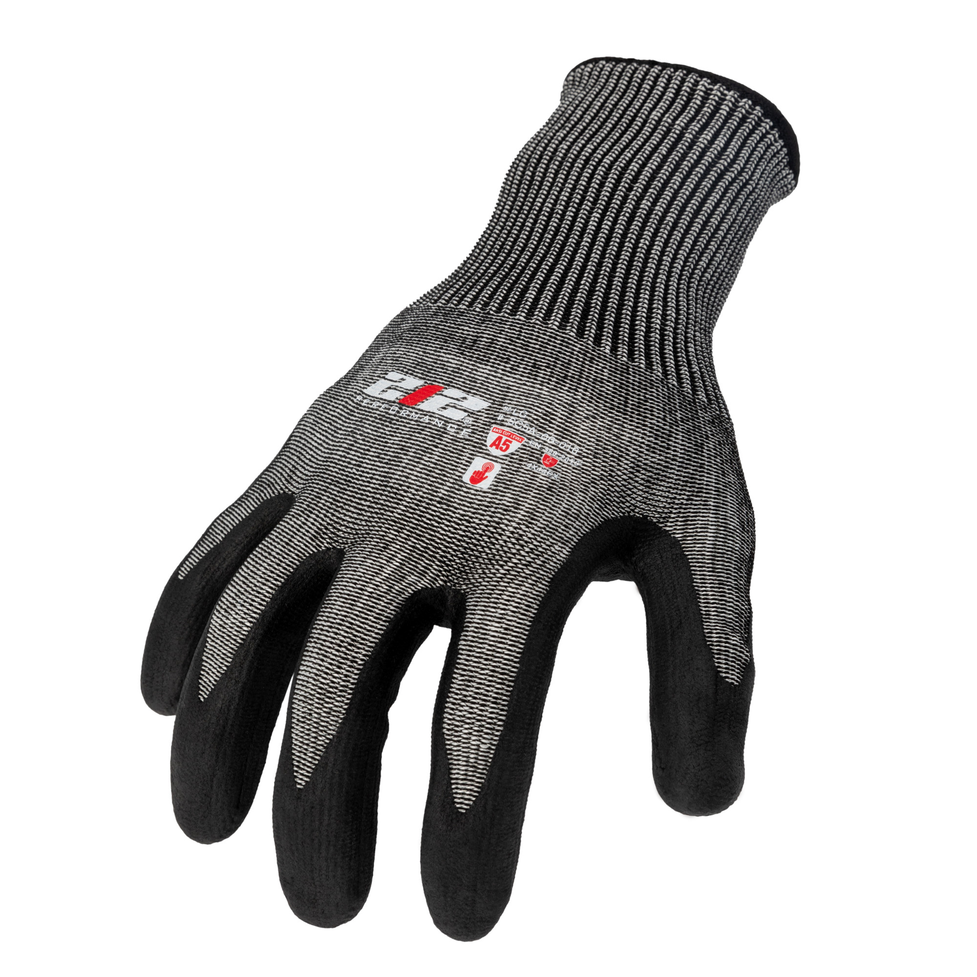 An update on a jobsite classic, these seamless work gloves give you the extreme comfort and dexterity you need along with several improvements over run of the mill gloves. The knit cloth main body of the glove is woven to be fully seamless and made of a blend of breathable synthetic fabric strands with additional reinforcing fibers to help keep your hands more comfortable when working in the heat than regular leather or rubber work gloves while still providing maximum protection. Tested to provide protection against abrasions, cuts, tearing, and punctures with an ANSI A5 cut rating and EN 388 4X43 rating making them perfect for machining and sheet metal work. The palm and undersides of the fingers are dipped in nitrile foam that is then textured to give excellent abrasion resistance and superb grip in dry or wet conditions. In addition, the glove features touchscreen compatible fingertips to keep you connected while working. The elastic cuff fits snugly around your wrist to keep out dirt and debris like gardening soil, sawdust, or metal shavings that can cause irritation if they get inside the glove. These gloves are perfect whether you’re gardening on a sunny day, doing woodworking projects in the garage, or sporting wrenches in the mechanic shop.