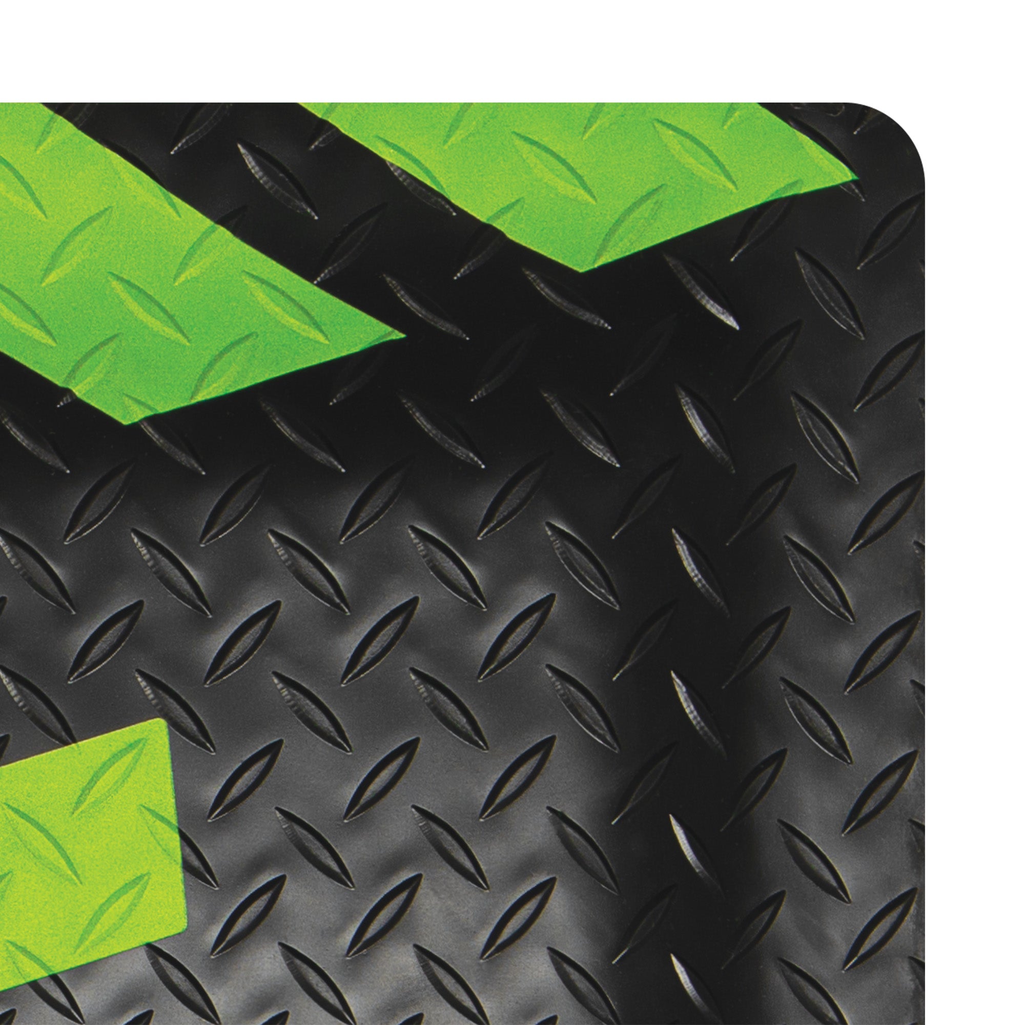 - Beveled anti-roll safety edge with green warning stripes.
