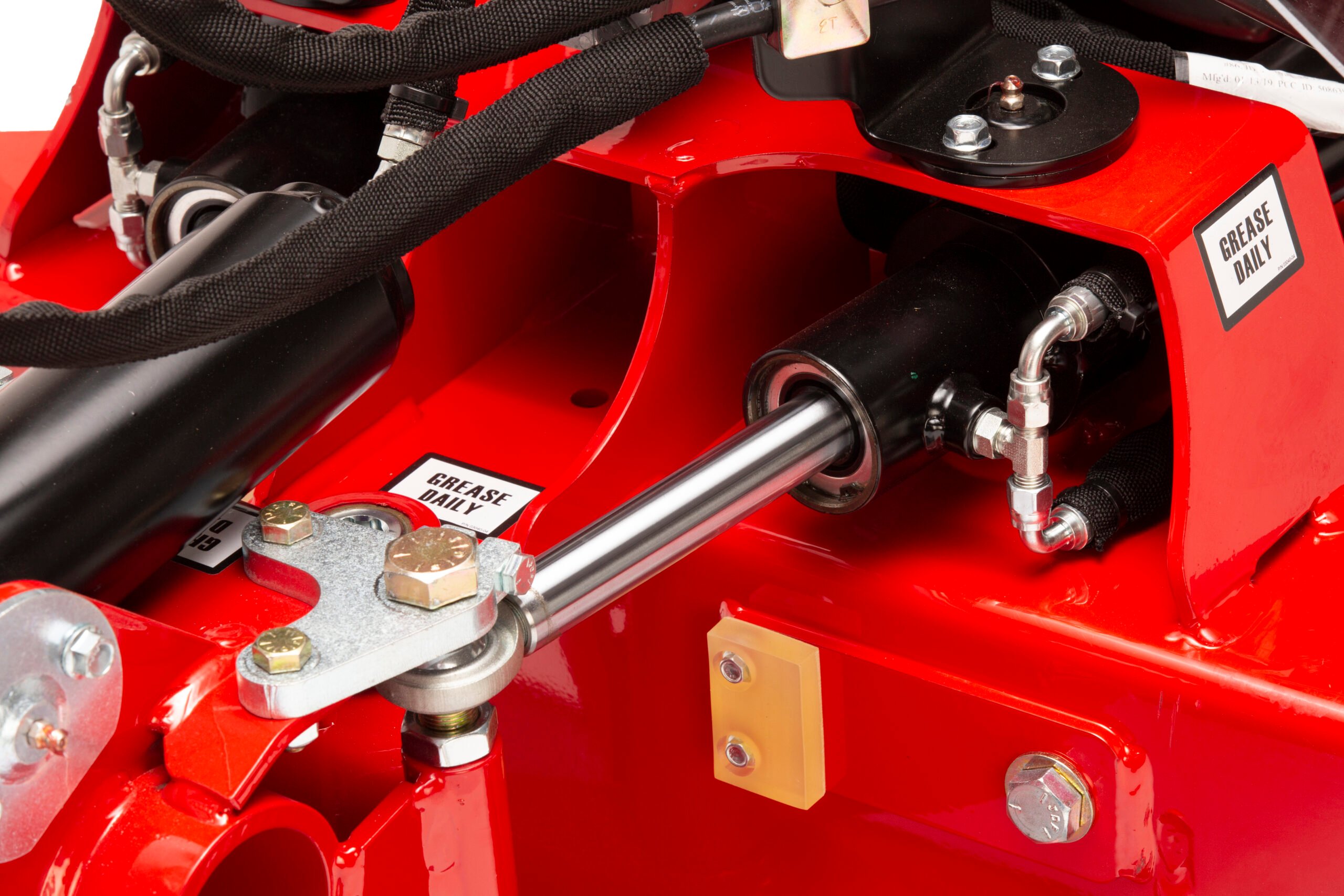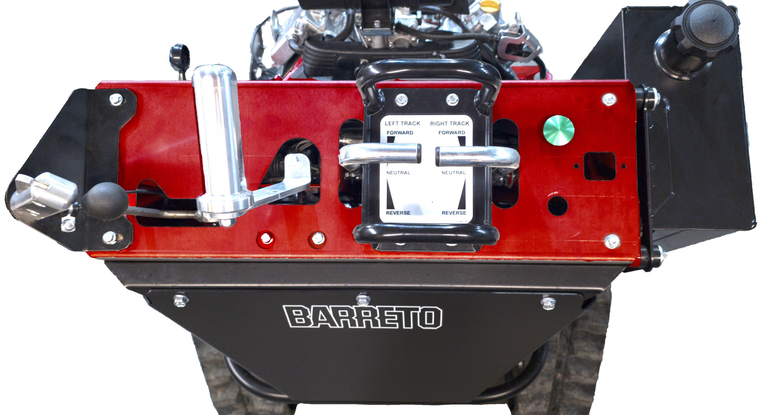 The cutter wheel system is designed for both safety and ease of operation, with all controls conveniently positioned on the operator console. Activation begins with the left hand placed on the hand rest, automatically enabling the Cutter ON switch. A simple press of the green Cutter Start button with the right hand engages the wheel, and releasing the controls stops it instantly for operator safety. The Lift/Lower lever provides smooth, responsive control over vertical movement, while the Swing Control allows effortless left-to-right steering. Together, these intuitive functions give the operator precise control of the cutter wheel for efficient and reliable performance.