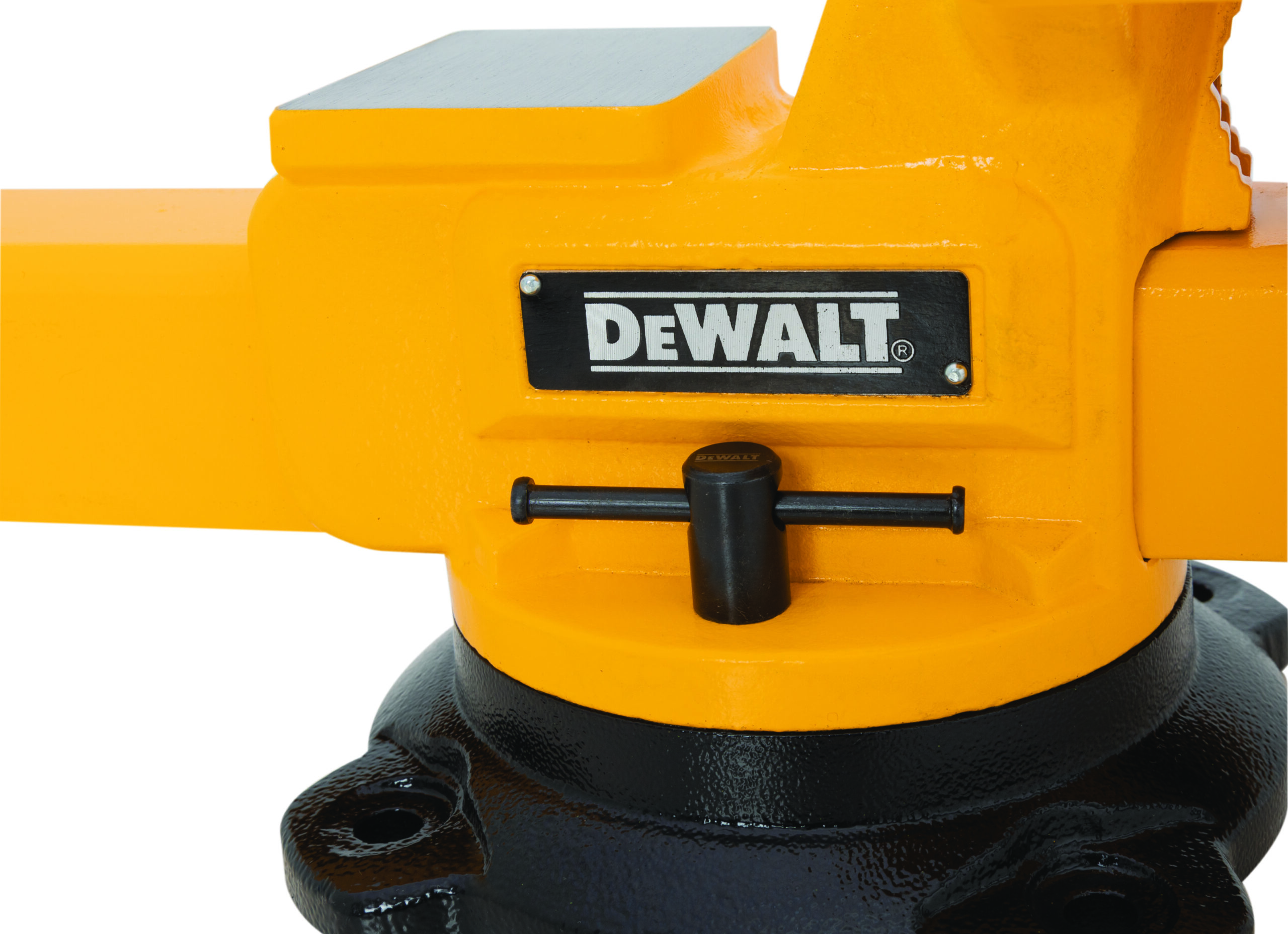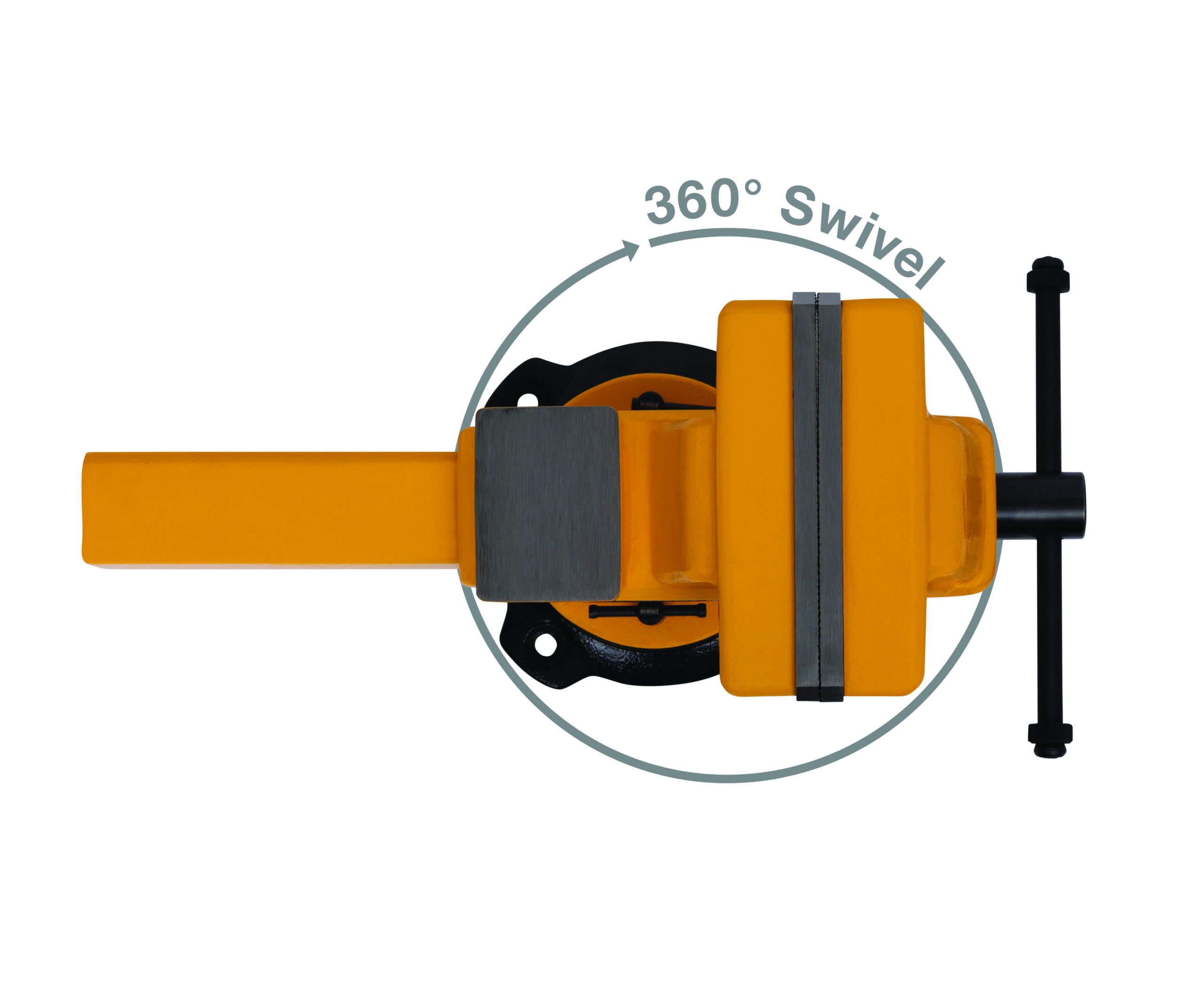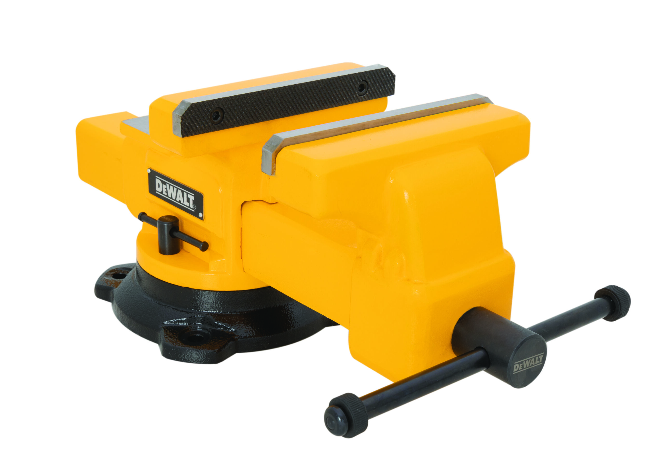 The DXMF08BV 8-Inch Bench Vise from DEWALT is built for demanding applications, delivering up to 4,400 lbs. of clamping force for ultimate stability. Constructed from high-strength ductile iron at 60,000 PSI, it ensures unmatched durability, outperforming lower-end alternatives. Designed for versatility, it features integrated V-Jaws for securely gripping pipes and cylindrical objects, a built-in anvil for shaping and bending, and serrated hardened steel jaws for a firm, non-slip hold. The 360-degree swivel base allows precise positioning, while replaceable jaws and handles extend its lifespan, making it a long-term investment for any workshop. Coated in DEWALT?s signature yellow and black, this professional-grade vise combines robust functionality with bold aesthetics, reflecting DEWALT?s commitment to quality and performance.