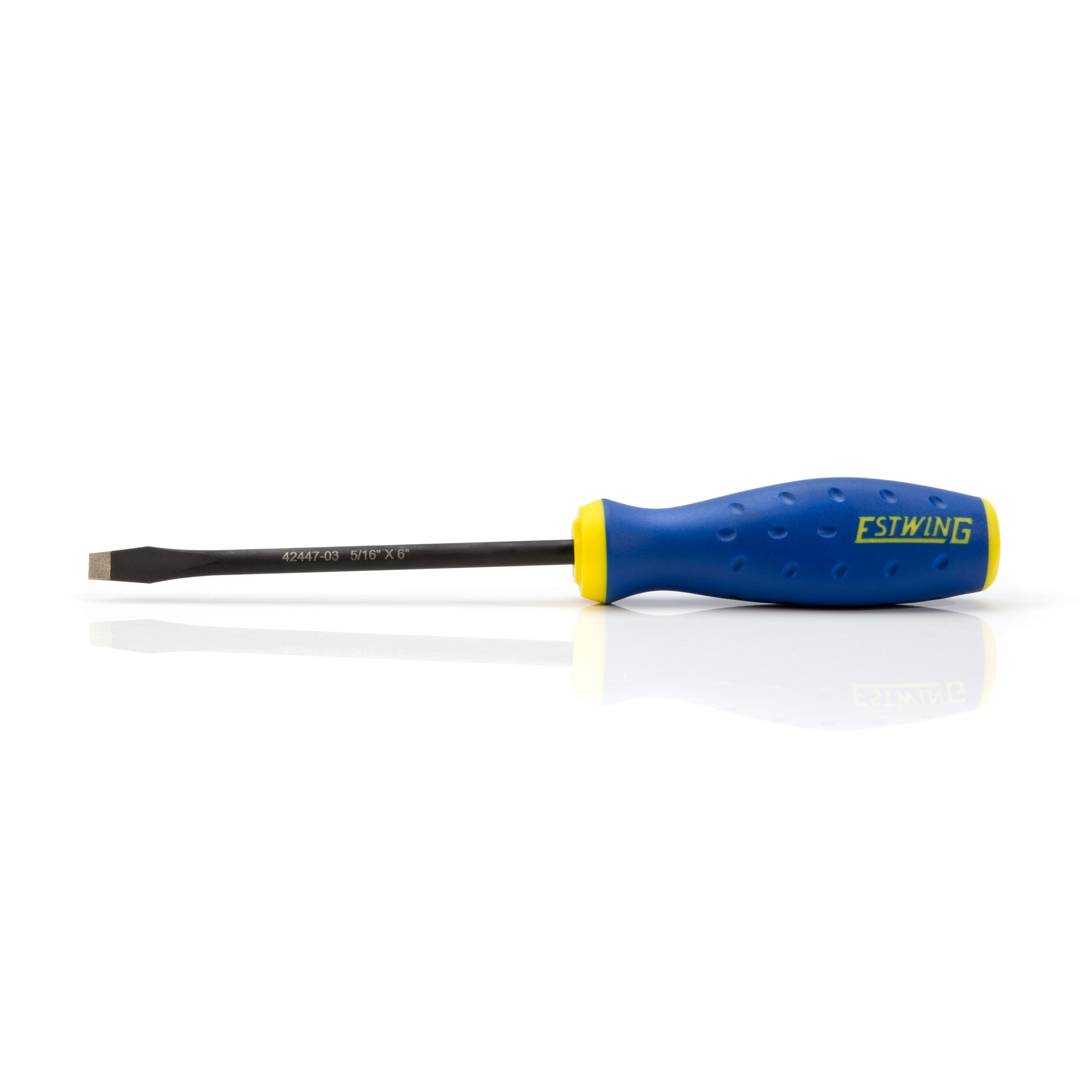 Tackle a wide range of repair and maintenance jobs with this Estwing 5/16-inch x 6-inch slotted tip screwdriver. Crafted with a range of enhancing features that set it apart from standard screwdrivers, this tool can help take some of the aggravation out of otherwise stressful projects. These features include a magnetic tip that hold screws in place for easier installation as well as aids in removing them from confined spaces. A diamond tip coating on the tip gives this driver increased friction for greater grip with less chance of cam-out in addition to making life much easier when trying to remove stripped out fasteners. The chrome vanadium steel tool shaft itself is coated with a protective black oxide layer that resists rust and corrosion. The comfortable dual layer handle is ergonomically designed for improved grip while delivering maximum torque. For easy identification when set among similar tools, laser etched size markings on the tool shaft and a icon on the end cap help to quickly distinguish driver tip type.