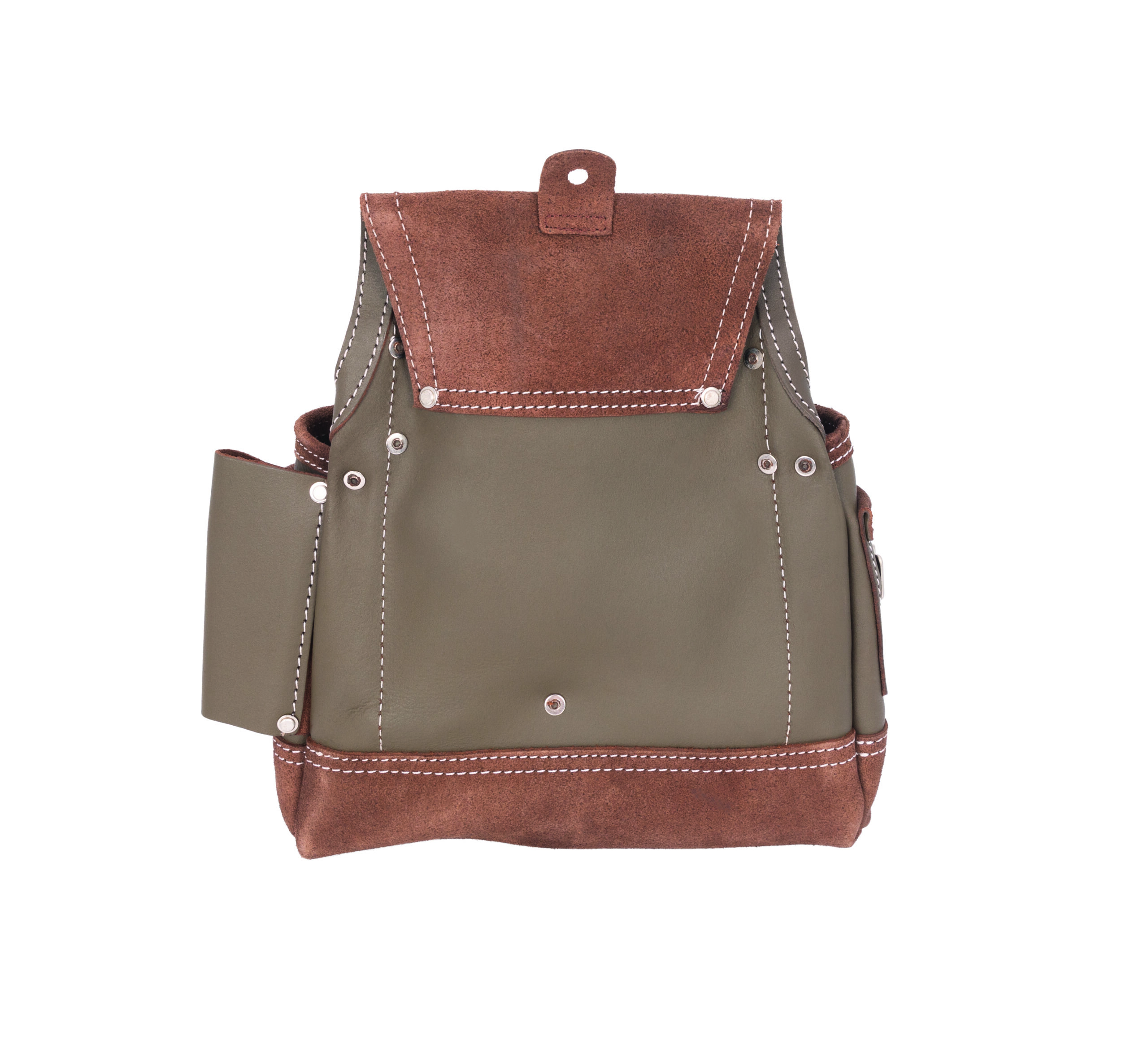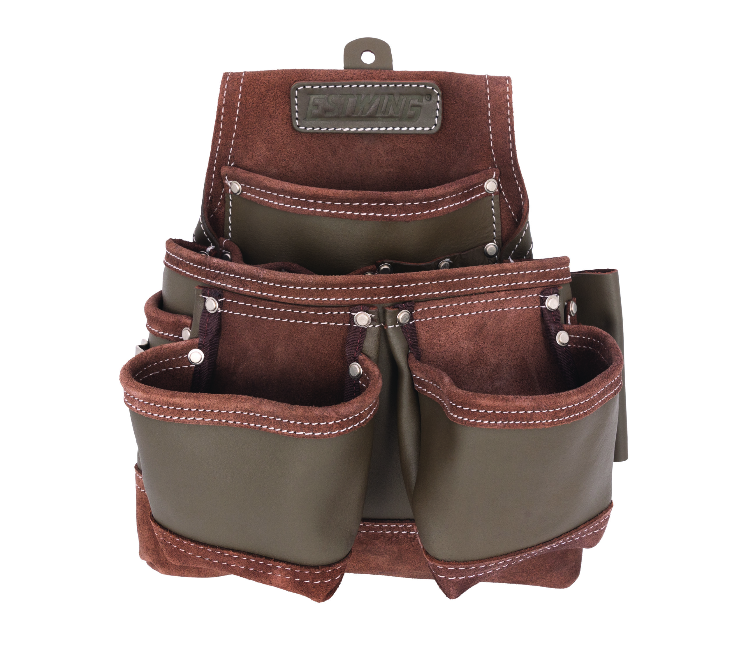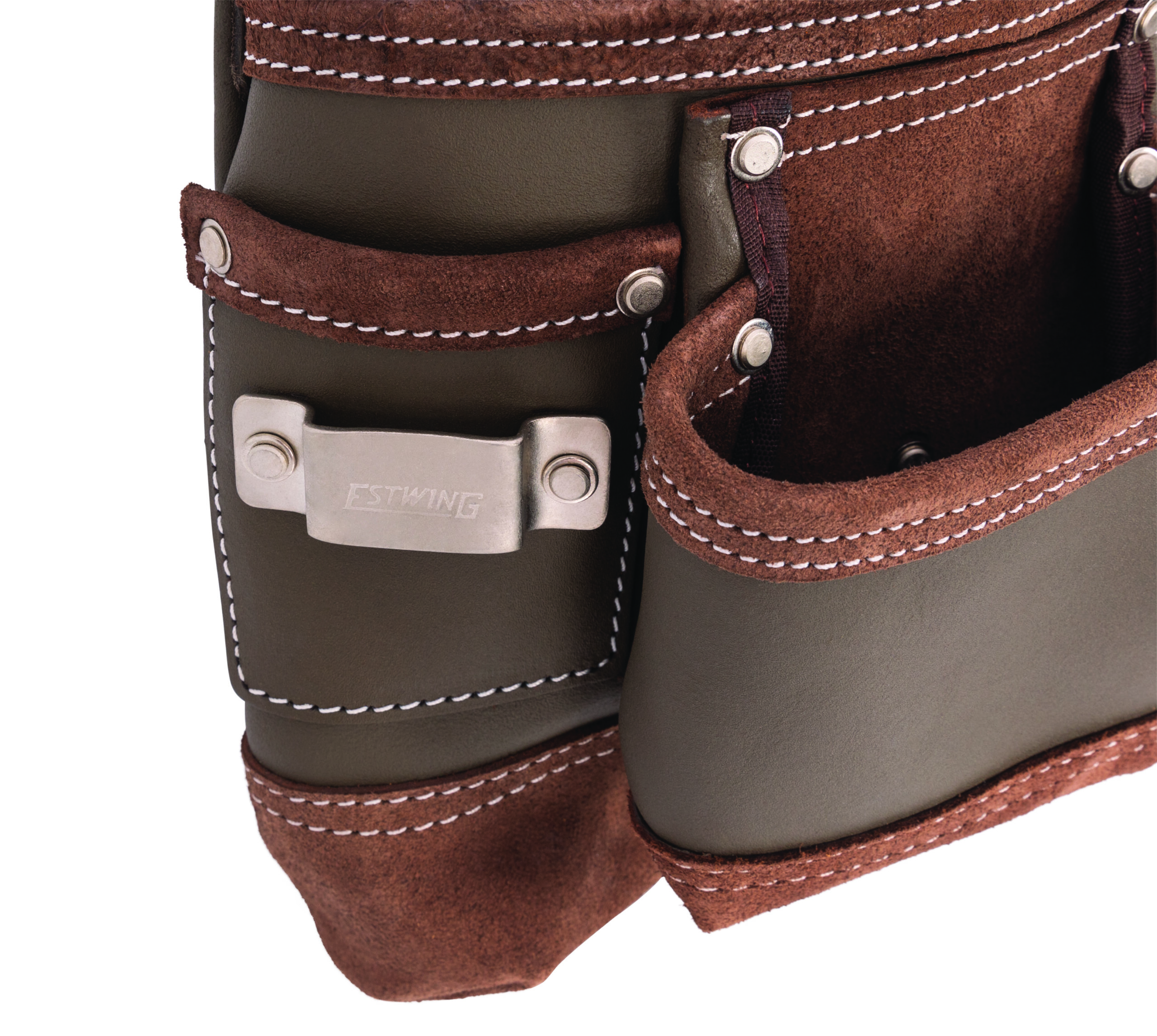 This Estwing framer’s tool pouch has 2 easy access fastener pouches and a single large main pocket that is lined with several smaller slip pockets to let you carry the tools and supplies you need to get your work done. Made from 100% top grain cowhide leather, this handy pouch supplies you with a total of 9 various sized pockets to store utility knives, pliers, wire cutters, screw and bit drivers, a carpenter’s square, and other small tools. Additional storage and organization includes a tape measure clip, interior and exterior tool loops as well as a wet formed hammer holder that adapts to your hammer for a perfect fit. Rivet-reinforced stress points and pocket corners add extra support to the heavy-duty double-stitched binding edges to provide lifelong reliability. The integrated tunnel-style belt loop is wide enough to fit onto belts of up to 3-inches in width.