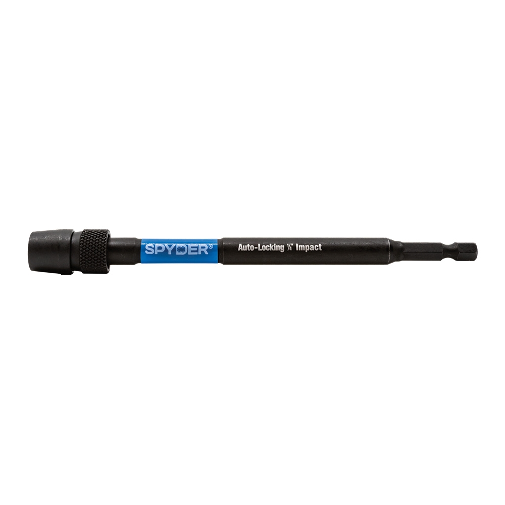 Spyder quick change bit holders are the durable solution for rapid bit changes in high power rotary drill motors with a 3-jaw chuck. A 3/8? quick change connector securely holds 1/4? hex shank driver bits and extensions for enhanced driving accuracy and one-handed ease of use. When the bit needs to be changed, simply pull back on the knurled sleeve and bits are auto-spring ejected, ensuring bits will not become stuck in the bit holder.