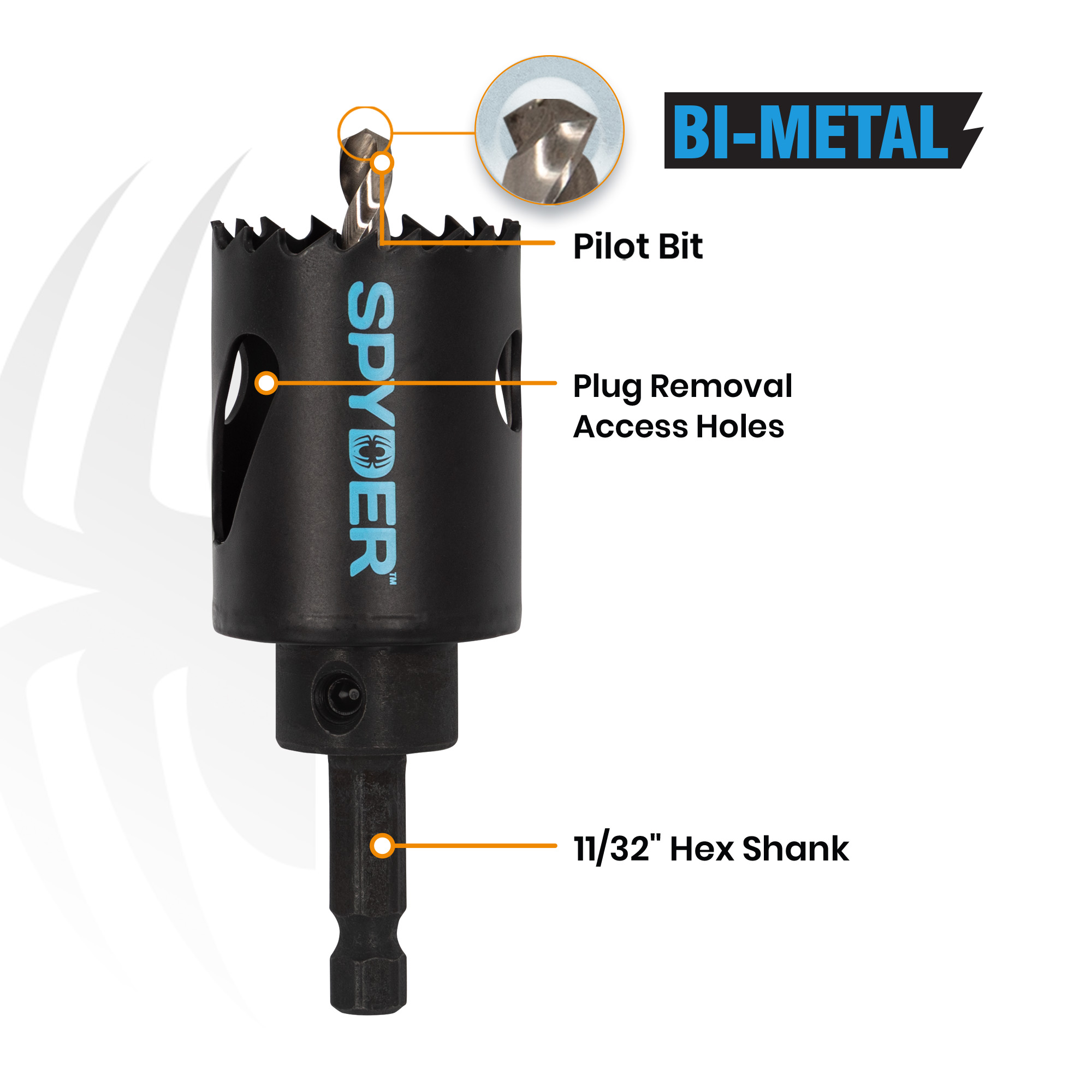 Cut with confidence using the Spyder? Fixed Arbor Hole Saw. Built tough for pros who demand accuracy and durability, this hole saw line is factory-assembled for perfect arbor-to-cup alignment, ensuring minimal runout, reduced vibration, and precise cuts every time. Featuring a rugged bi-metal construction, hardened HSS teeth, and a reinforced steel cup, Spyder Fixed Arbor Hole Saws deliver smoother performance across wood, metal, and plastic?even when nails are in the way. With longer tool life and uncompromising strength, these hole saws keep you cutting clean and cutting fast?job after job.