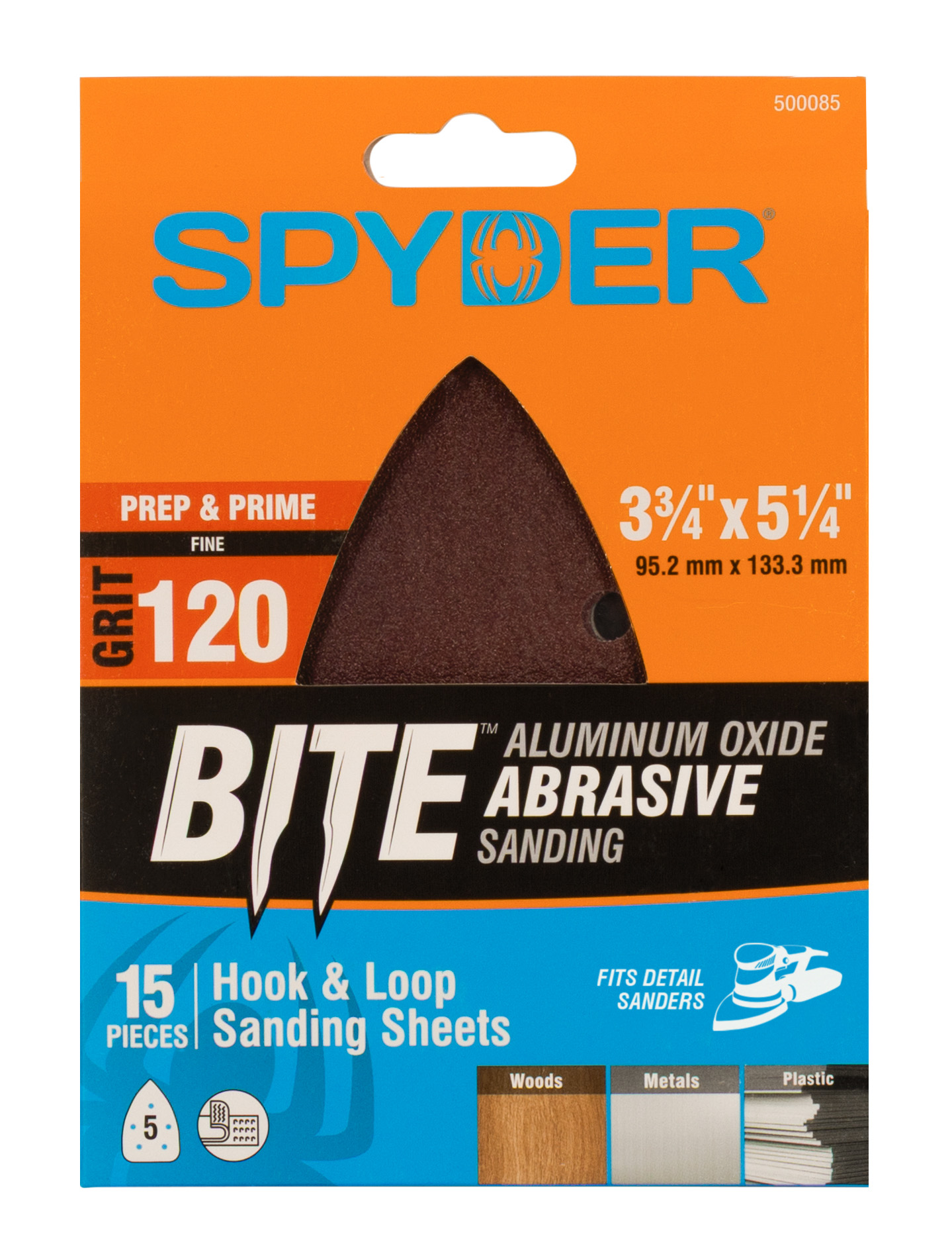 Spyder Bite? Aluminum Oxide Hook & Loop Sanding Sheets are the go-to solution for general-purpose sanding on wood, metal, and plastic. Built with premium aluminum oxide grain, these sheets provide fast, consistent cutting performance-perfect for woodworking, metal prep, and finishing tasks. The durable construction stands up to repeated use, while the hook & loop backing allows for quick and secure attachment to orbital sanders. Whether you’re smoothing wood surfaces, prepping metal for paint, or sanding plastic components, Spyder Bite? delivers reliable results that pros can count on.