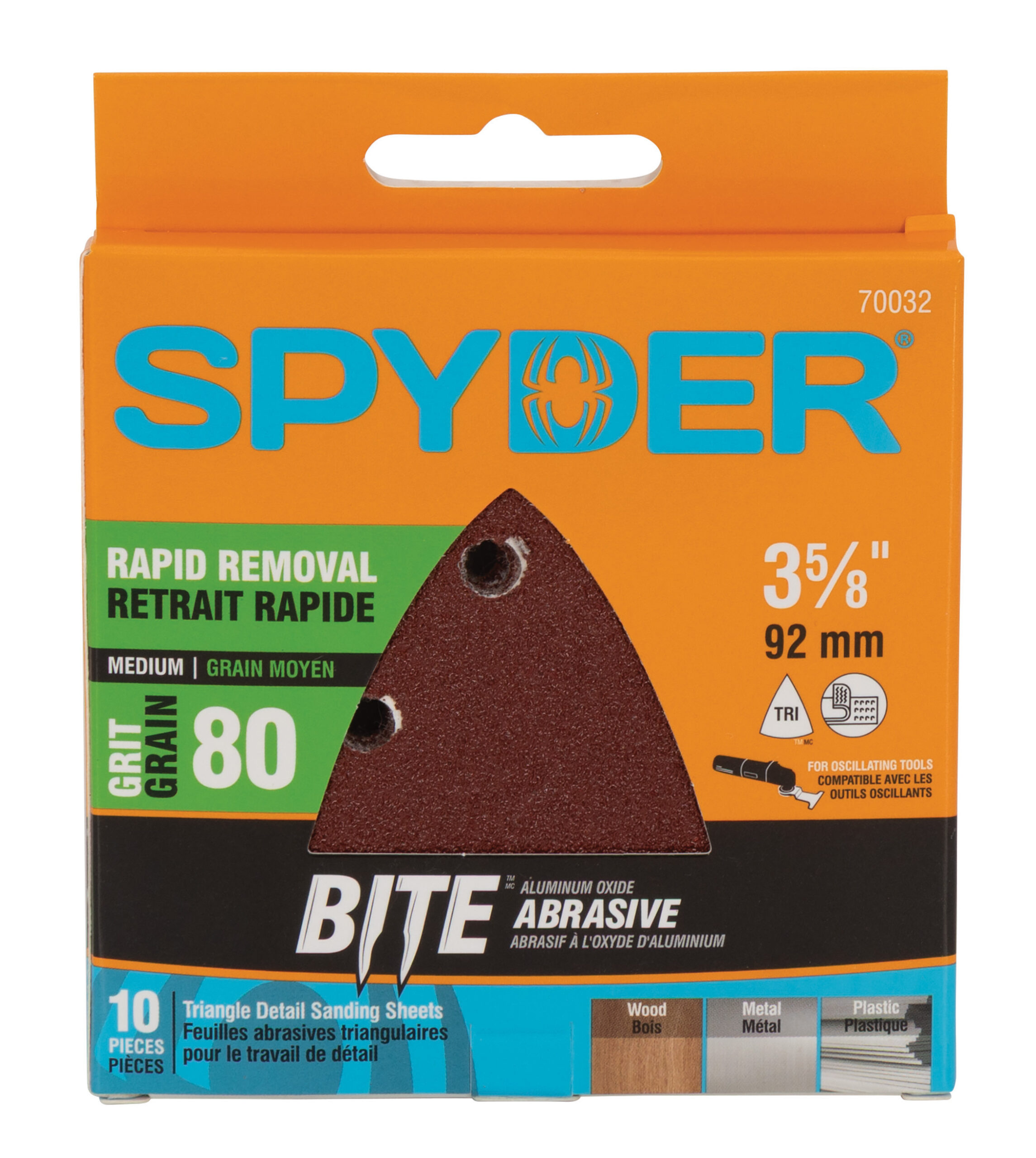 Spyder 3-5/8-Inch 80-Grit Aluminum Oxide Triangular Detail Sanding Sheets (10-Pack)