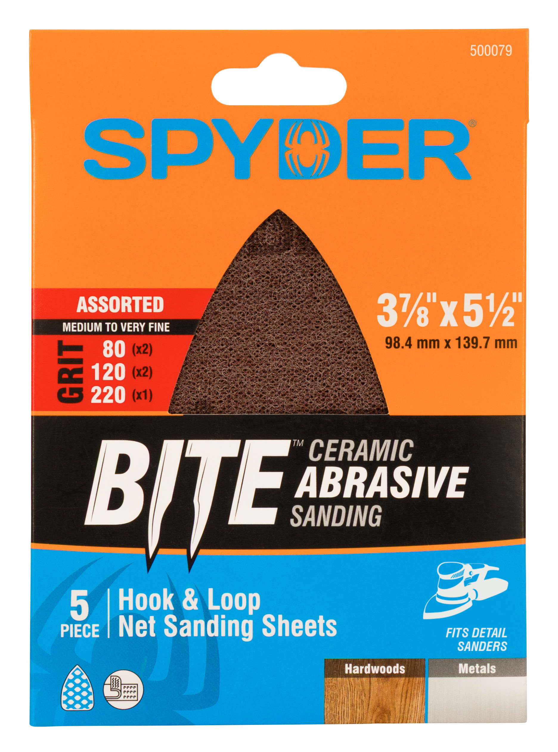 Spyder Bite? Ceramic Net Sanding Sheets are built for extreme durability and precision on metal and hardwoods. Engineered with sharp, long-lasting ceramic grain and an open-weave net design, these sheets deliver fast, aggressive cuts while allowing maximum dust extraction for a cleaner surface and cooler sanding. Ideal for grinding and sanding metal or refining hardwoods, the flexible net construction conforms easily to contours and edges. Whether you’re tackling rust, welds, or shaping dense wood, Spyder provides pro-grade power with every pass-no loading, no limits.
