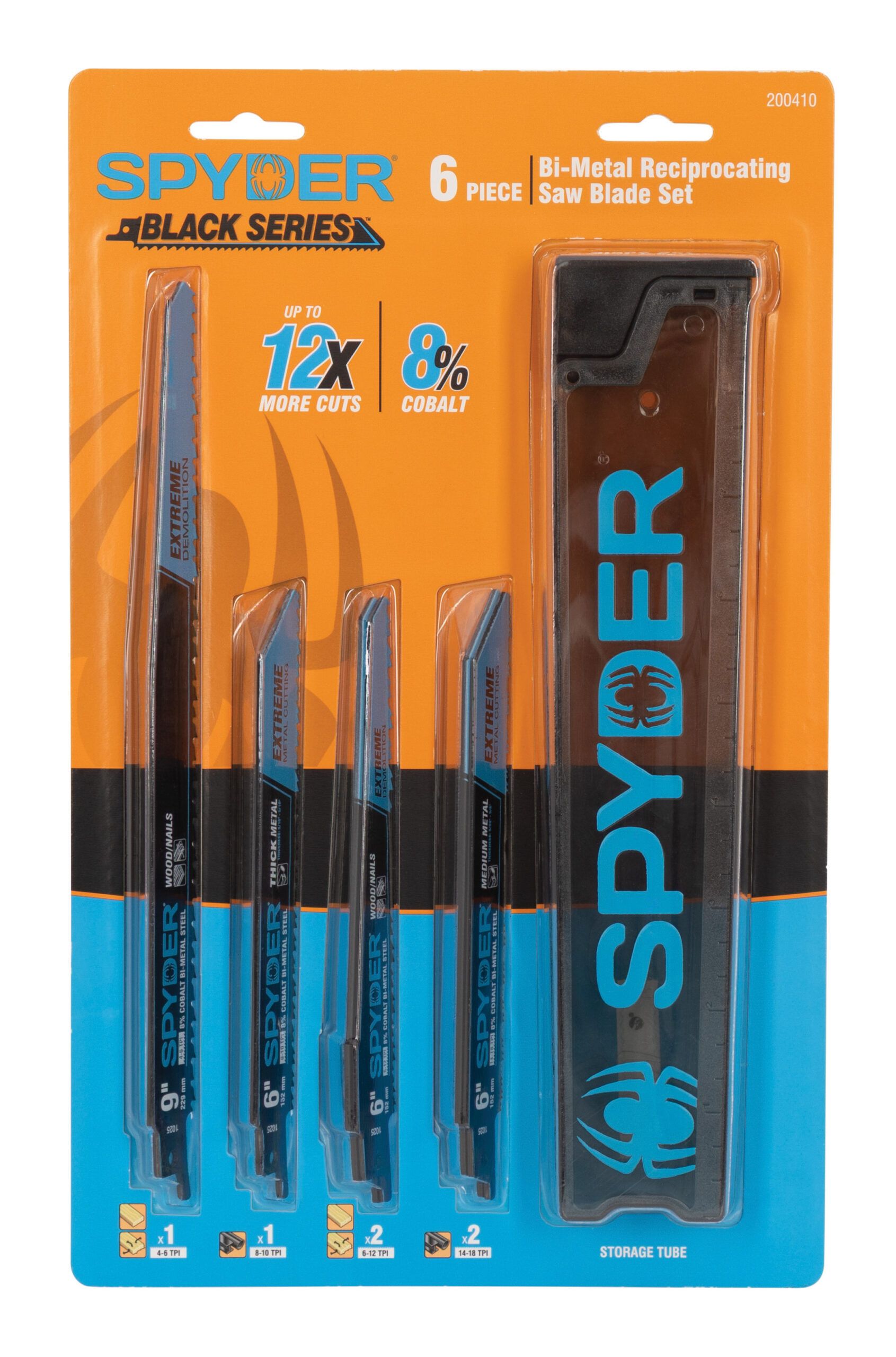 Tear through the toughest demolition jobs with the Spyder Extreme Demolition Bi-Metal Reciprocating Saw Blade. Engineered with an extra-thick profile and fortified with 8% cobalt bi-metal construction, this blade is built to outlast and outperform?delivering up to 12x more cuts in wood and nail-embedded material. From rough teardown to heavy-duty remodel, Spyder?s Extreme Demolition blade delivers unmatched strength, longer life, and relentless cutting power when pros need it most.