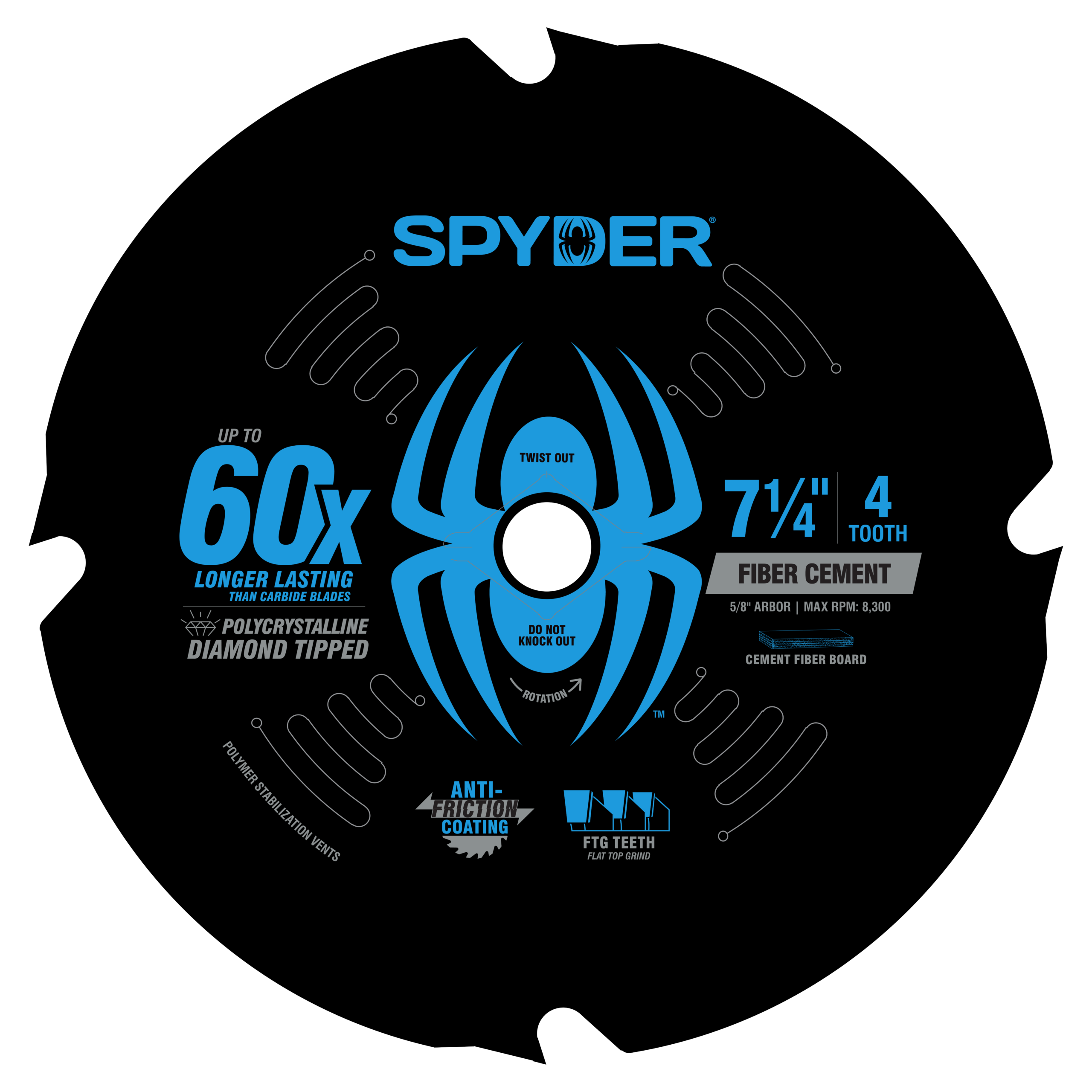 The Spyder diamond-tipped circular saw blade is the durable blade for cutting fiber cement. Polycrystalline diamond (PCD) coated teeth provide clean cuts and exceptionally long life in fiber cement applications – cut fiber cement backer board in the bathroom or exterior trim panels with this durable blade. Track straight with reduced friction, heat and noise – the Carbide-tipped circular saw blade is the professionals choice for cutting fiber cement. Up to 60x the life of standard carbide blades.