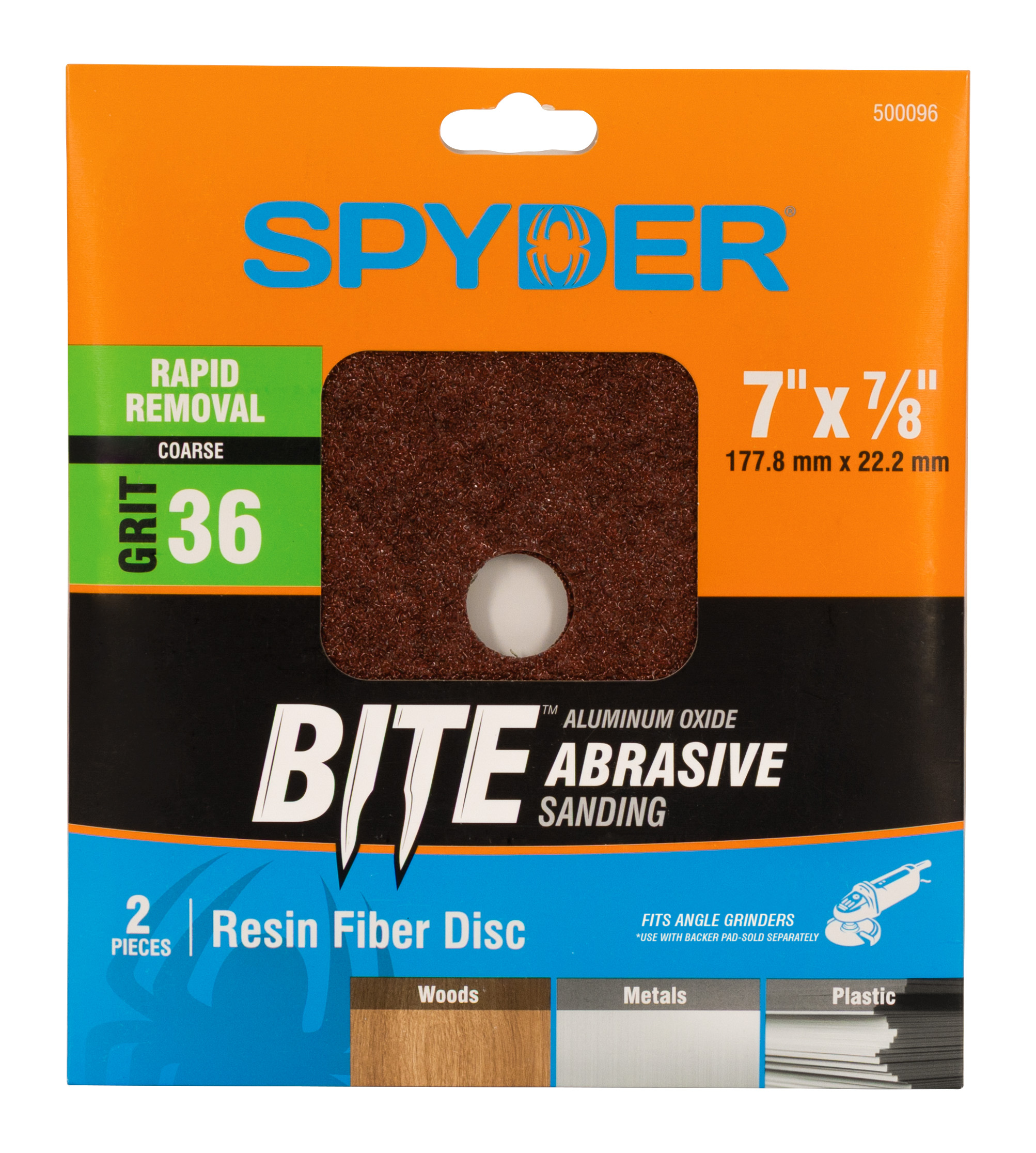 Spyder Bite? Aluminum Oxide Resin Fiber Discs are built for tough, general-purpose sanding on wood, metal, and plastic. Featuring premium aluminum oxide grain bonded to a durable resin fiber backing, these discs deliver fast, aggressive cuts with long-lasting performance-perfect for woodworking, metal surface prep, and material shaping. Designed for use with angle grinders and compatible backing pads, they hold up under pressure and maintain their edge through demanding jobs. Whether you’re smoothing wood, grinding metal, or cleaning up plastic surfaces, Spyder Resin Fiber Discs bring professional-grade results with every spin.