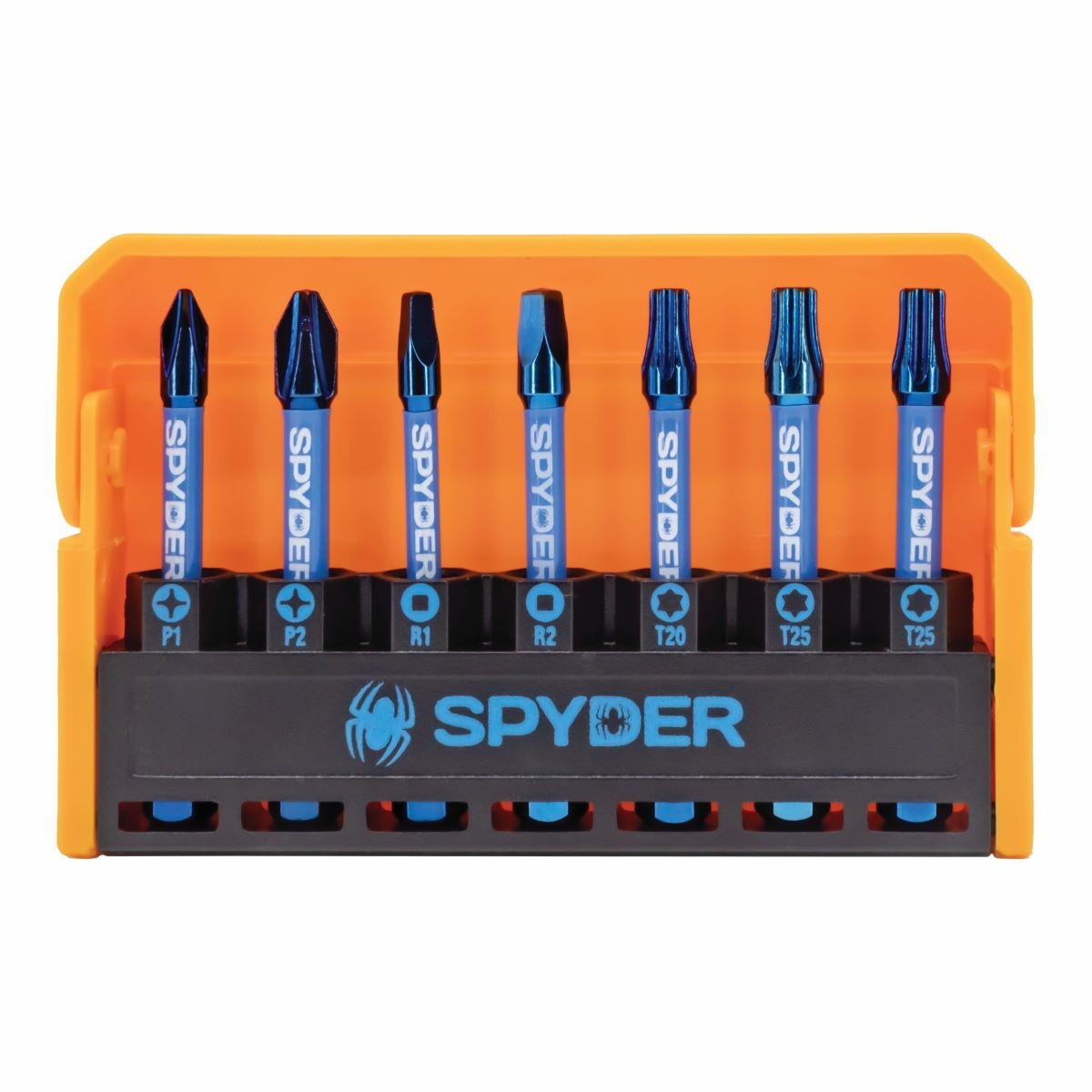 Spyder Mach-Blue? impact rated driver bits are the durable driving bit for demanding high torque impacting applications. Mach-Blue? Tough Tip Technology significantly reduces tip wear for reliable fastener driving ? up to 70x longer life than other impact rated driver bits. IMPACTive? alloy tool steel torsion zones actively flex to dissipate peak impact forces, reducing fastener recess damage and preventing tip breakage. Mach-Blue? driver bits are optimized for use in high torque cordless impacting drivers and drill drivers, making them the pro powered tool that outlasts your workday.