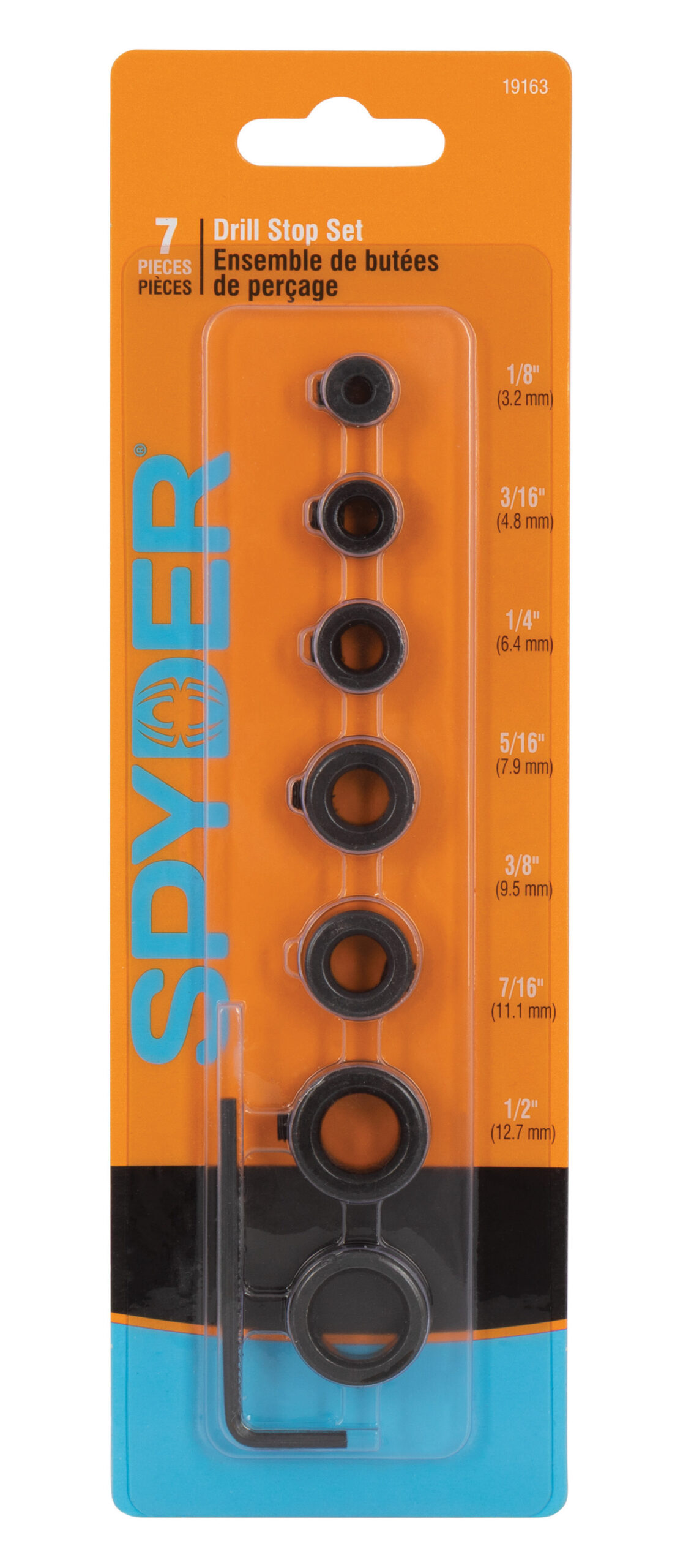 The Spyder? 7-Piece Drill Stop Set ensures consistent drilling depth for cleaner, more accurate holes every time. Designed for precision and reliability, these stops easily attach to your drill bits and lock securely in place with the included hex key. Perfect for woodworking, cabinetry, and metalworking applications, Spyder drill stops prevent over-drilling and deliver professional-grade results across a range of bit sizes. Built to last with durable steel construction, this set keeps your drilling controlled, consistent, and efficient.