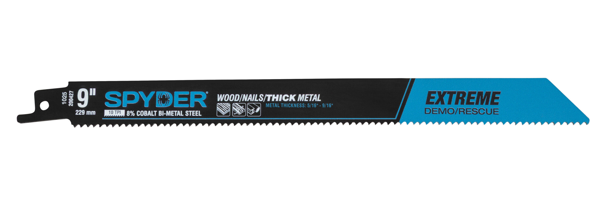 Part of the Spyder? Black Series, the Extreme Demolition/Rescue Bi-Metal Reciprocating Saw Blade is built for the most punishing jobs. With an extra-thick profile and 8% cobalt bi-metal construction, this blade delivers unmatched durability, heat resistance, and cutting life. Designed to power through wood, metal, nails, and debris, it delivers up to 12x more cuts?giving pros and first responders the confidence to tear through demolition sites or rescue scenarios with relentless speed and strength.