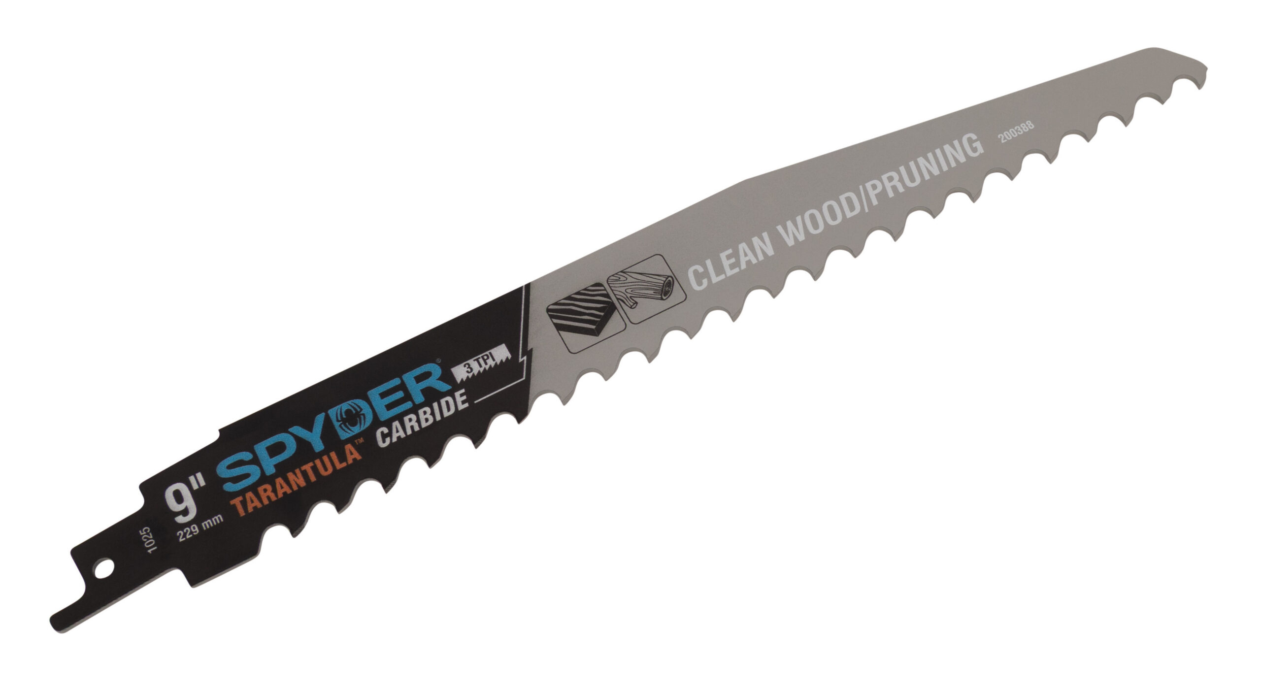 The Spyder Tarantula? Carbide Pruning Reciprocating Saw Blade is engineered for fast, aggressive cutting through clean wood and green material. With a 3 TPI design, this blade powers through branches, limbs, and timber with speed and control, delivering smoother cuts and longer life compared to standard pruning blades. Whether you?re tackling yard work, storm cleanup, or heavy-duty pruning, the Tarantula? blade sinks its teeth into wood and doesn?t let go.