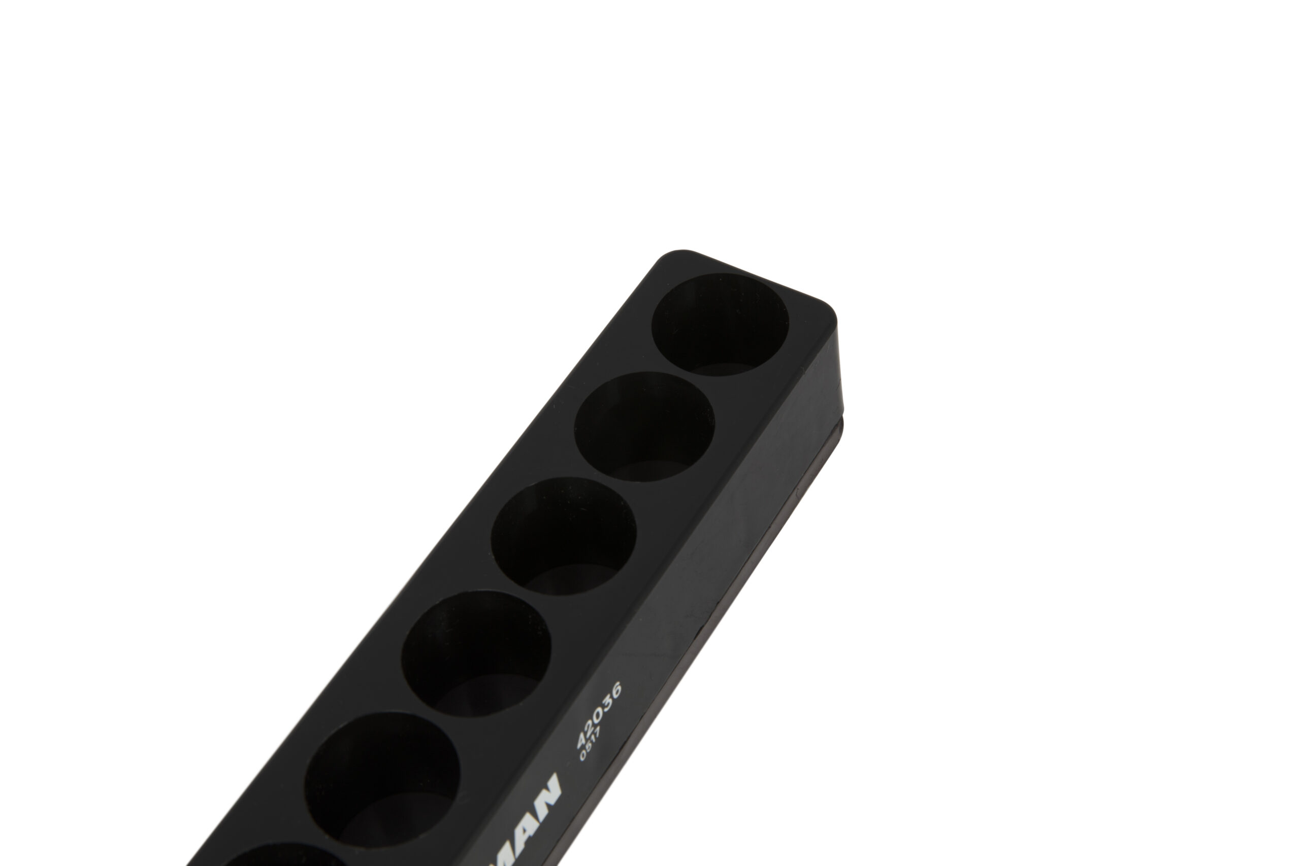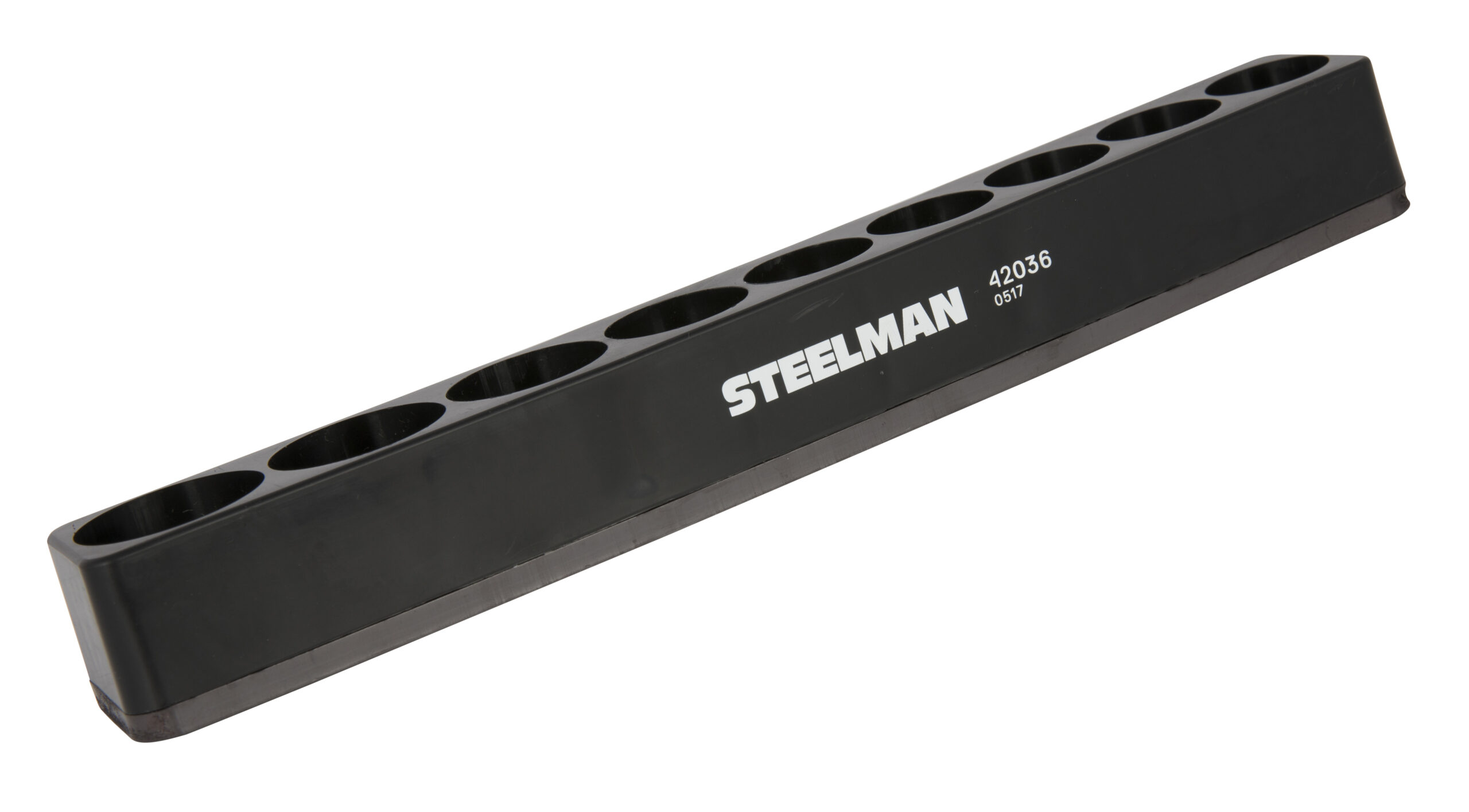 Keep all your 1/2-inch drive sockets organized with the STEELMAN 42036 magnetic organizer. The soft rubberized covering on the bottom of this organizer prevents damage to finished surfaces and does double duty by both allowing the holder to be mounted on any ferrous metal surface and keeping held sockets securely in place. The organizer is designed to hold a total of 9 standard/SAE and metric sockets. The durable plastic construction is oil and fuel resistant and the smooth surface is easy to wipe clean when soiled. In addition, the magnetic material used is non-transferrable and will not magnetize held sockets or surfaces/tools it comes in contact with.