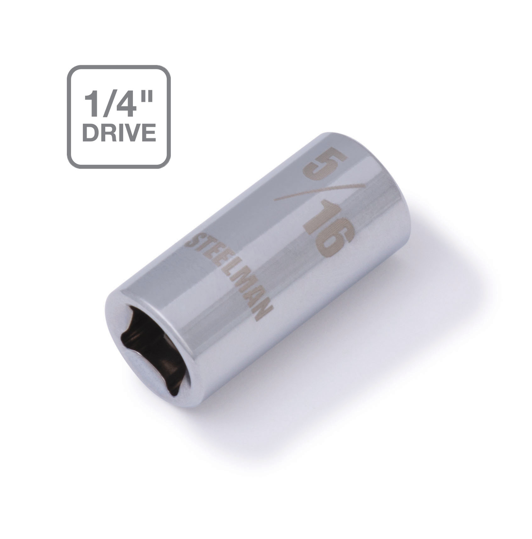 If you need a socket you can depend on, be sure to find a home in your tool box for the STEELMAN 78156 1/4-Inch Drive x 5/16-Inch Shallow Depth 6-Point Chrome SAE Single Socket. Constructed of durable heavy-duty chrome vanadium steel, this socket has the strength required for high torque jobs and will fit onto any 1/4-inch drive ratchet, torque wrench, extension bar, or adapter. The socket features a rust and corrosion resistant high polish chrome finish that not only looks good but is easy to wipe clean of dirt, oil, and grime. The socket’s 6-point design grips the sides of fasteners and not the corners, reducing wear and the chance of slippage or rounding the fastener. Easy to read size markings are laser etched onto the steel making it simple to identify the socket you need without the worry that the markings will wear away or rub off with use. Rated to meet or exceed ANSI / ASME performance requirements for hand tools, these can handle tough use in any professional or home shop / garage.