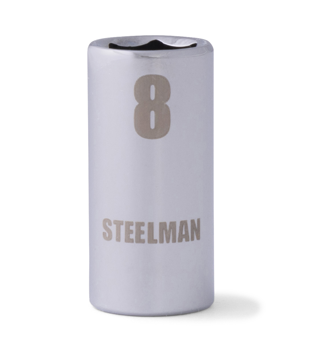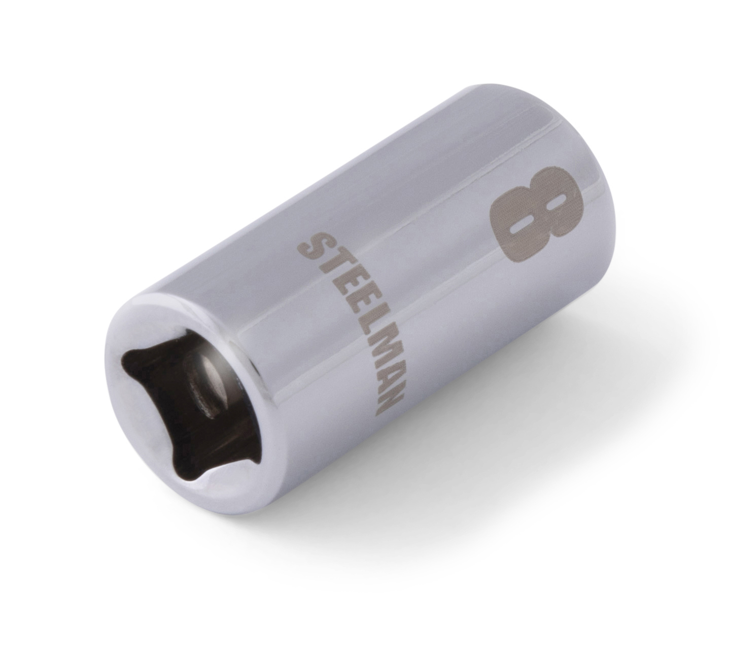 If you need a socket you can depend on, be sure to find a home in your tool box for the STEELMAN 78173 1/4-Inch Drive x 8mm Shallow 6-Point Metric Socket. Constructed of durable heavy-duty chrome vanadium steel, this socket has the strength required for high torque jobs and will fit onto any 1/4-inch drive ratchet, torque wrench, extension bar, or adapter. The socket features a rust and corrosion resistant high polish chrome finish that not only looks good but is easy to wipe clean of dirt, oil, and grime. The socket’s 6-point design grips the sides of fasteners and not the corners, reducing wear and the chance of slippage or rounding the fastener. Easy to read size markings are laser etched onto the steel making it simple to identify the socket you need without the worry that the markings will wear away or rub off with use. Rated to meet or exceed ANSI / ASME performance requirements for hand tools, this socket can handle tough use, whether it is in professional garage fixing car engines or at home repairing furniture and appliances.