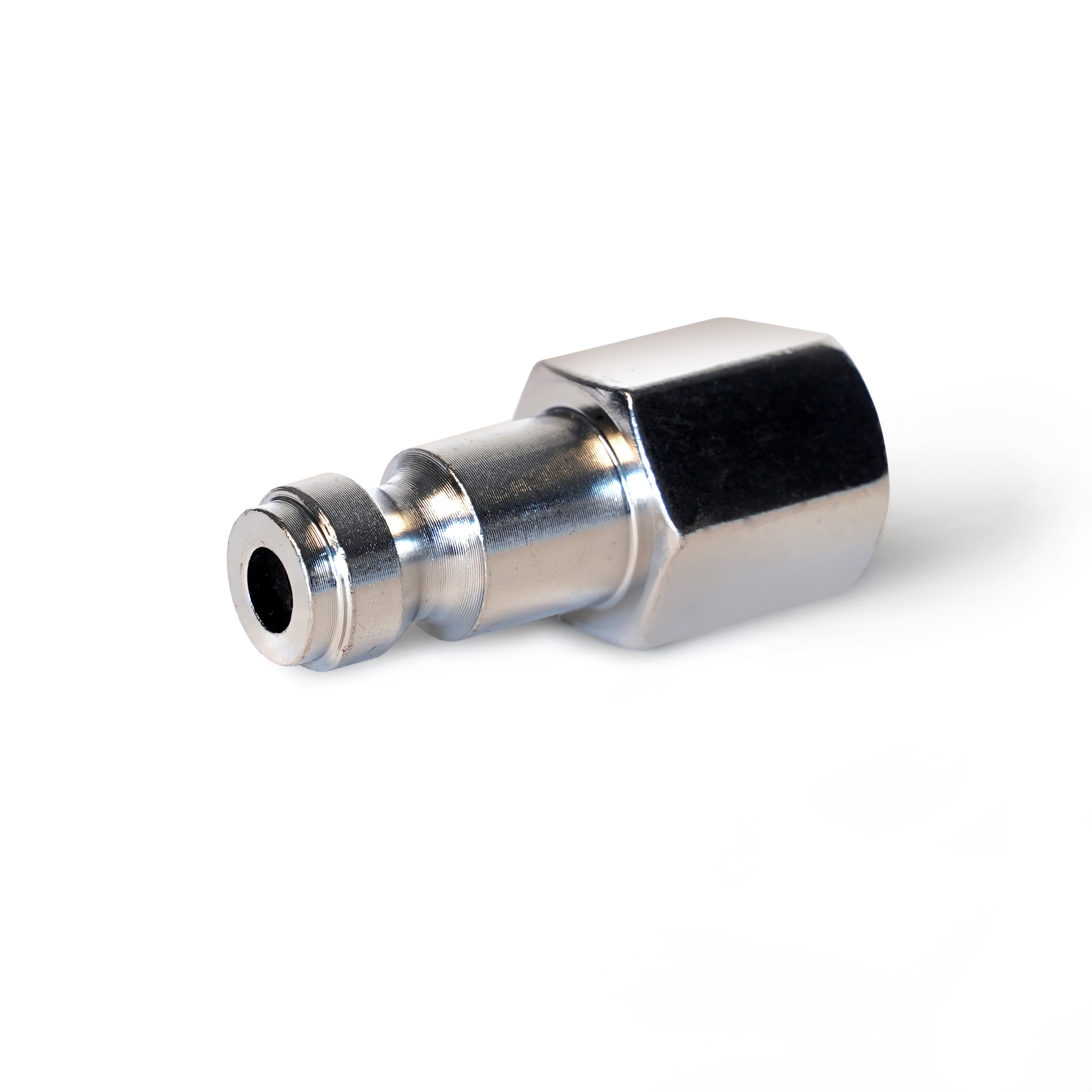 The STEELMAN 14F14T-IND 1/4-Inch Plated Steel Quick Disconnect Plug with 1/4-Inch Female NPT Threads is the answer for any home workshop or automotive garage looking to power just one more air tool. Each plug is constructed of solid steel which has a durable nickel plating that is rust and corrosion resistant so condensation in water lines won’t cause premature failure of the tool adapter. The quick-disconnect end is sized to fit 1/4-inch couplers and fittings and the threaded 1/4-inch FPT end threads easily onto tools for fast and simple setup. To make connections easier the hex shaped body of the plugs can be easily tightened onto tools with any adjustable wrench or an appropriately sized combination or end wrench.