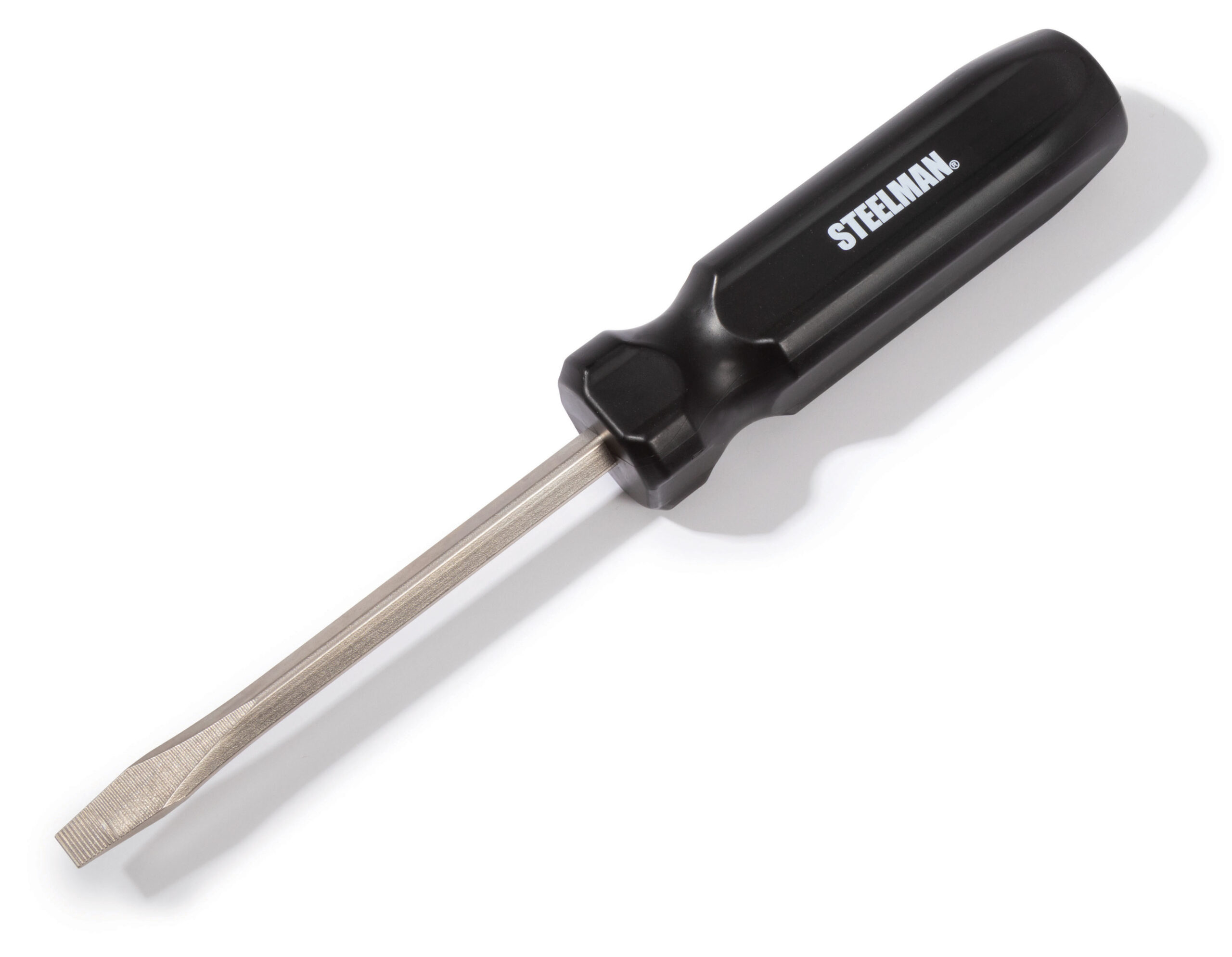 From cabinets, electronics, furniture, and toys around the house to cars, trucks, and other projects in the workshop or garage there is constantly something in need of repair that calls for a screwdriver. With the STEELMAN 31042-KH 1/4-Inch x 4-Inch Slotted Tip Screwdriver with Fluted Handle in your tool box you can conquer any of these projects. This general purpose tool is made with a durable and heat-treated alloy steel shaft that is set into a molded plastic handle. A chrome plating on the shaft of the tool provides it with increased rust and corrosion resistance while the molded handle has a fluted design to provide a secure grip for increased rotational torque. The tool’s shaft measures 4-inches long from the base of the handle to give you maximum reach when going after fasteners found deep under dashboards and in engine compartments or set in tunnel-like recesses on electronics and appliances. Backed by a limited lifetime manufacturer’s warranty.