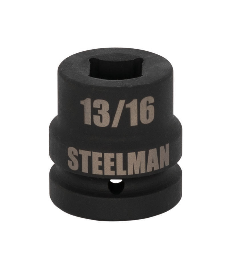 Every mechanic knows that having the right tools on hand can make your life easier when working on heavy-duty vehicle wheels. The STEELMAN 79333 1-Inch Drive 13/16-Inch 4-Point Square Budd Impact Socket is designed specifically to help in the removal of the threaded, square end studs used in Budd style heavy-duty truck wheels. Made from drop forged and heat treated chromoly steel, this sockets feature a ball detent recess on the 1-inch drive end to help hold it securely onto ratchets, air wrenches, adapters, and extensions. The socket features a rust and corrosion resistant black phosphate protective coating with laser etched size callouts and markings. Rated to withstand up to 150% of ASME torque requirements for impact tools, this socket can handle tough use in any professional shop / garage, home workshop, or on the work site.