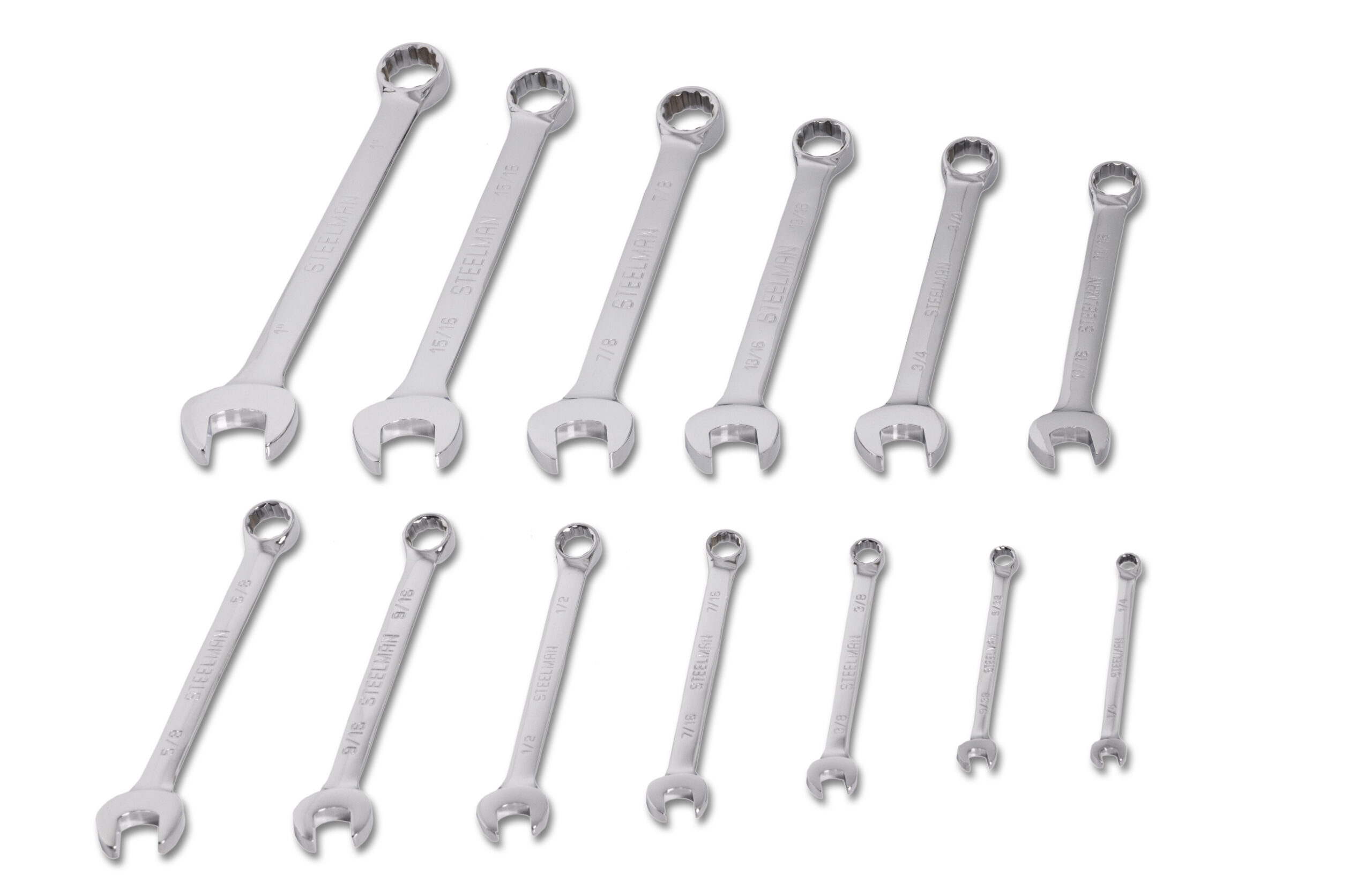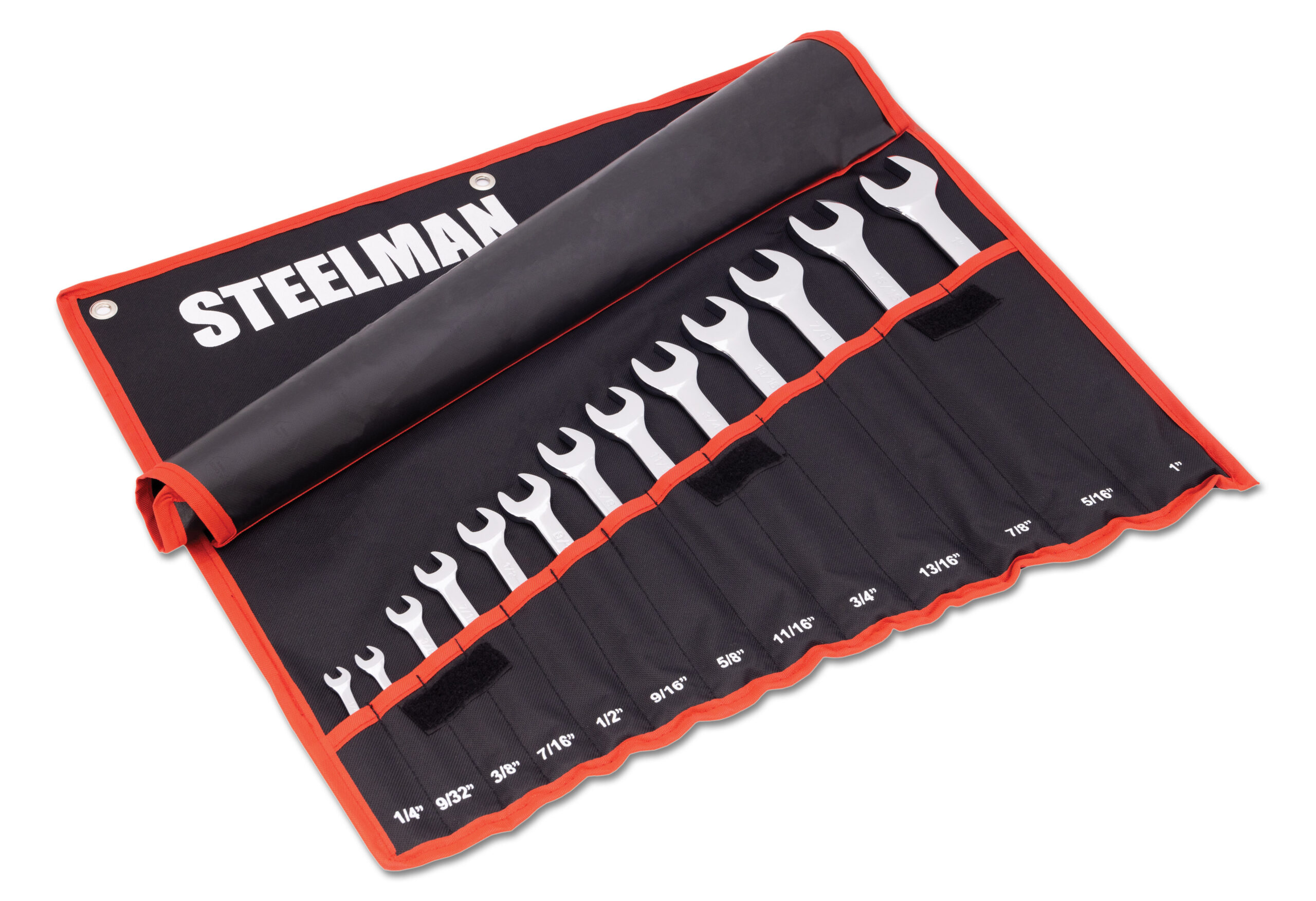 Work with the same quality tools as professional mechanics and service technicians with the STEELMAN 82544 13-Piece SAE 12-Point Combination Wrench Set with Fabric Storage Roll. These durable alloy steel tools are designed to allow you to remove and tighten multiple kinds of fasteners without needing additional tools. Their 12-point box end can be used to work on 12-point, traditional 6-point, and even 4-point nuts, bolts, and other fasteners. Each wrench has an angled open end that makes it easier to use on fasteners in small spaces that restrict access by letting you flip the wrench around and access the fastener from a new angle. The offset box ends provide extra clearance to get past obstructions as well as make room for your hands and knuckles as you work. Multiple size markings on each wrench are stamped into both sides for easy identification doesn’t wear away or rub off with repeated tool use. When not in use the included fabric storage roll keeps the set organized and compact for easy transportation. To prevent wrenches from slipping out, a hook and loop secured, angled flap covers the wrench tops and keeps them in place. Reinforced metal grommets on the storage roll allow it to be hung on a wall or tool cart for easy access. Set includes 1/4-inch, 9/32-inch, 3/8-inch, 7/16-inch, 1/2-inch, 9/16-inch, 5/8-inch, 11/16-inch, 3/4-inch, 13/16-inch, 7/8-inch, 15/16-inch, and 1-inch sizes.