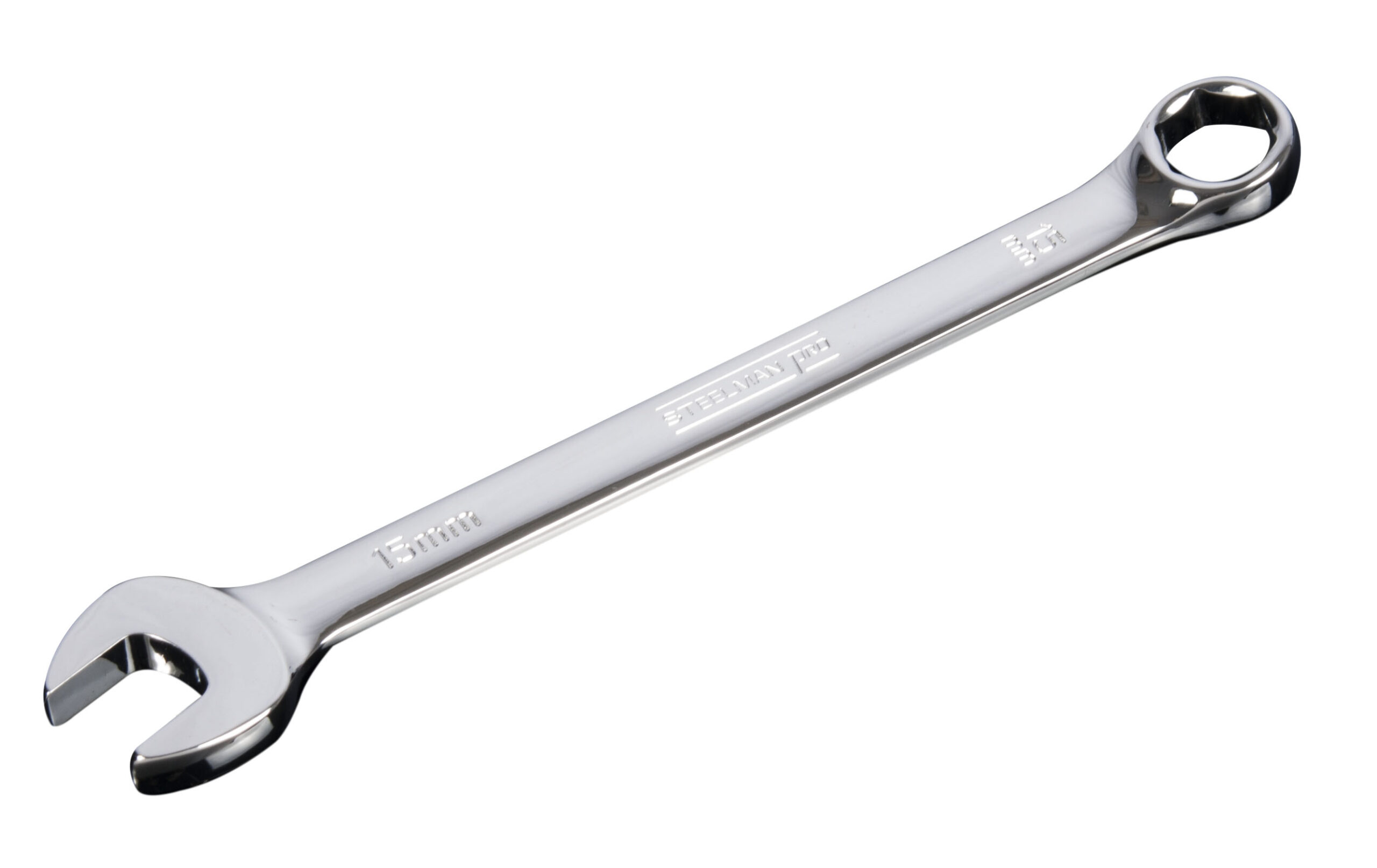 Work with the same quality tools as service technicians with the STEELMAN PRO 78340 15mm Combination Wrench with 6-Point Box End. Constructed of heat treated chrome vanadium steel alloy this tool is guaranteed to meet or exceed ASME and ANSI torque standards to give you the long lasting durability you require from your tools. Size callouts are stamped into the steel both vertically and horizontally on both sides of the wrench to make identification easy. A mirror-polish chrome plating covering provides rust and corrosion resistance and is easy to wipe clean when soiled with oil and other workshop grime. The open end on this combo wrench is angled 15-degrees to provide increased leverage and easier access to fasteners in tight places. Similarly, the box end has a 15-degree offset to provide your fingers with that little bit of extra clearance that they need as you work. The 6-point box design grips the sides of fasteners and not the corners to provide maximum torque transfer with a reduced chance of rounding off fasteners.