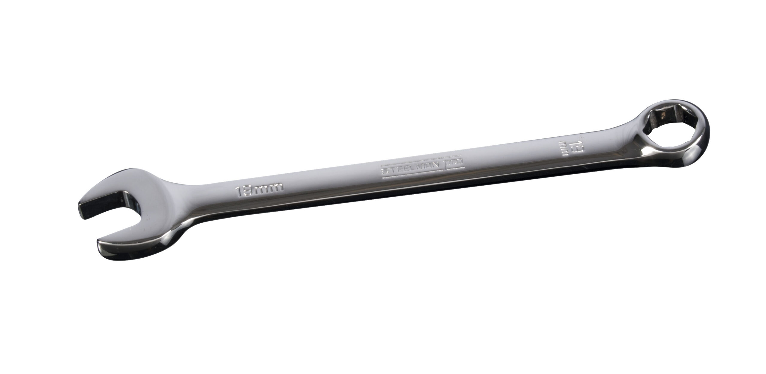 Work with the same quality tools as service technicians with the STEELMAN PRO 78344 19mm Combination Wrench with 6-Point Box End. Constructed of heat treated chrome vanadium steel alloy this tool is guaranteed to meet or exceed ASME and ANSI torque standards to give you the long lasting durability you require from your tools. Size callouts are stamped into the steel both vertically and horizontally on both sides of the wrench to make identification easy. A mirror-polish chrome plating covering provides rust and corrosion resistance and is easy to wipe clean when soiled with oil and other workshop grime. The open end on this combo wrench is angled 15-degrees to provide increased leverage and easier access to fasteners in tight places. Similarly, the box end has a 15-degree offset to provide your fingers with that little bit of extra clearance that they need as you work. The 6-point box design grips the sides of fasteners and not the corners to provide maximum torque transfer with a reduced chance of rounding off fasteners.