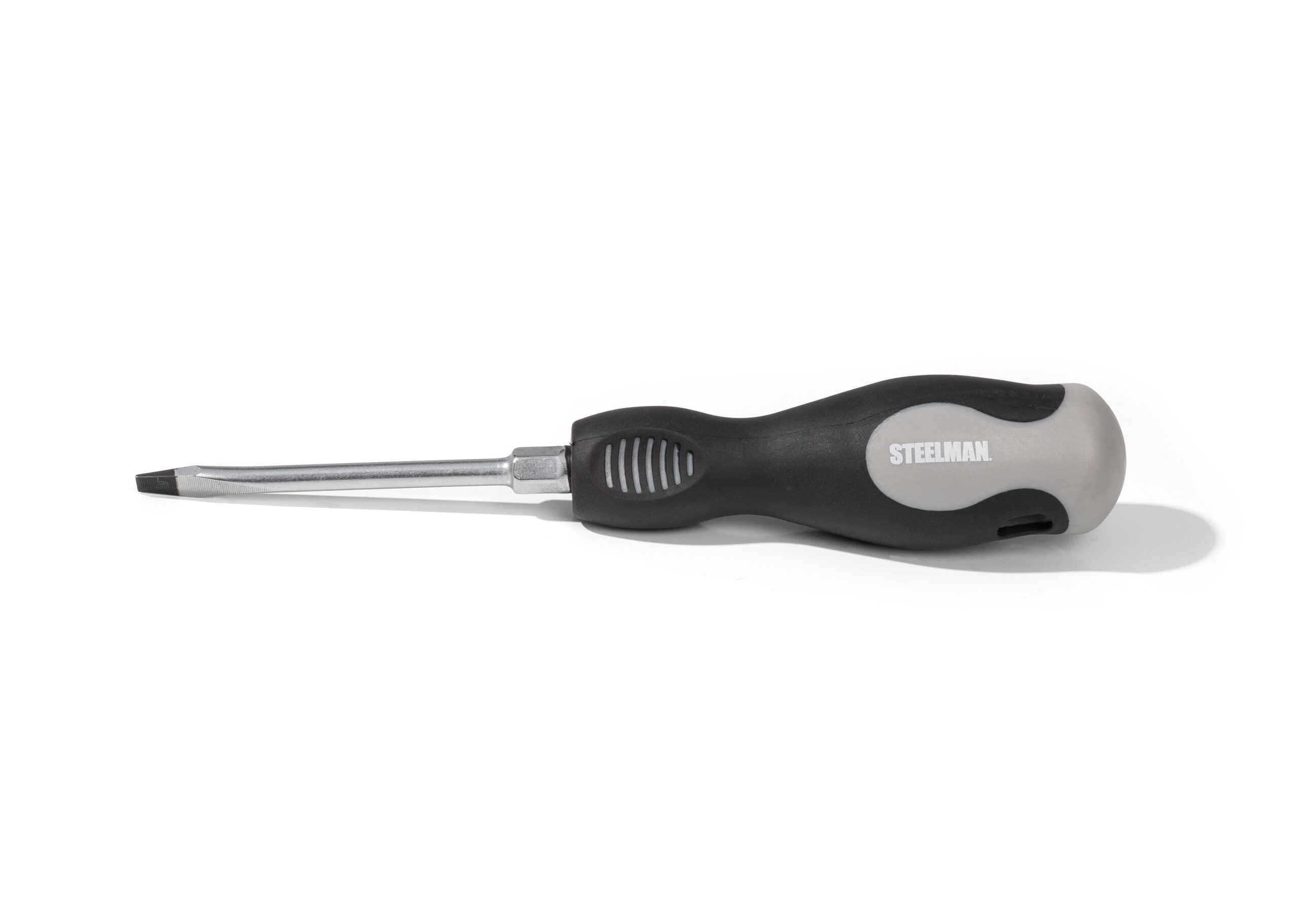 The STEELMAN 78464A 3/16-Inch x 3-Inch Slotted Tip Screwdriver with Comfort Grip Handle and Hex Bolster is a general-purpose screwdriver designed to handle the toughest jobs you find yourself facing. The durable shaft is made from long-lasting chrome-vanadium steel that has a high polish chrome finish that wipes easily clean from oil, grease, and other grime. The 3/16-inch wide slotted/flat blade tip is coated with a protective black oxide coating which adds increased grip in fasteners and won’t chip or flake off like plated tips. The 3-inch long shaft provides convenient reach when working on the surface as well as recessed fasteners. When encountering particularly stubborn fasteners, the shaft section next to the handle features a hex-shaped bolster that allows you to use an open-end or crescent wrench for added rotational torque. The dual-layer, rubber padded handle provides a comfortable grip, allowing for a longer work time with less strain on your hands. So whether it’s fixing cabinets, lighting fixtures, and other household repairs or working on cars and trucks in the garage, let STEELMAN help you get the job done.