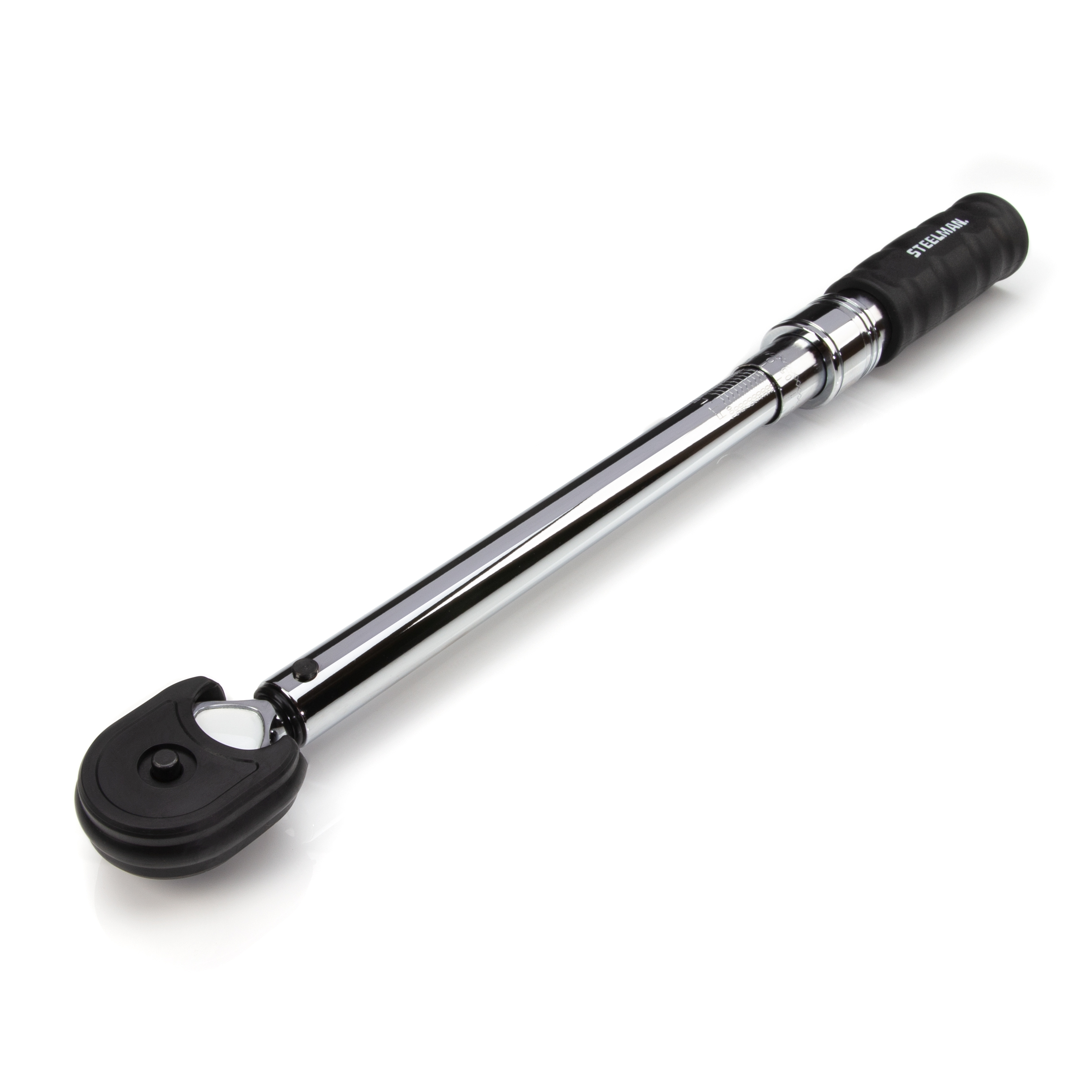 When working on car tires or under the hood, having the right tools can mean the difference between finishing with confidence and worrying if something will come loose. The STEELMAN 3/8-Inch Drive 10-100 ft-lb Micro-Adjustable Torque Wrench will help you finish with the confidence that your repair job is as good as any factory or repair garage would do. Useable with any 3/8-inch drive socket and adjustable in increments of 1 ft-lb in a range of 10 to 100 ft-lb this chrome plated tool will make a click that you can both hear and feel when you’ve reached the desired torque on the fastener. To prevent accidental damage, both to the wrench and your vehicle, the ratchet head is encased in a TPR rubber protective sleeve and the included plastic storage case will ensure that it will be safe from the knocks and bumps of storage that could cause a loss of calibration. To prove our confidence that your torque wrench is ready to go, right out of the box, each STEELMAN torque wrench comes with a certificate of calibration.