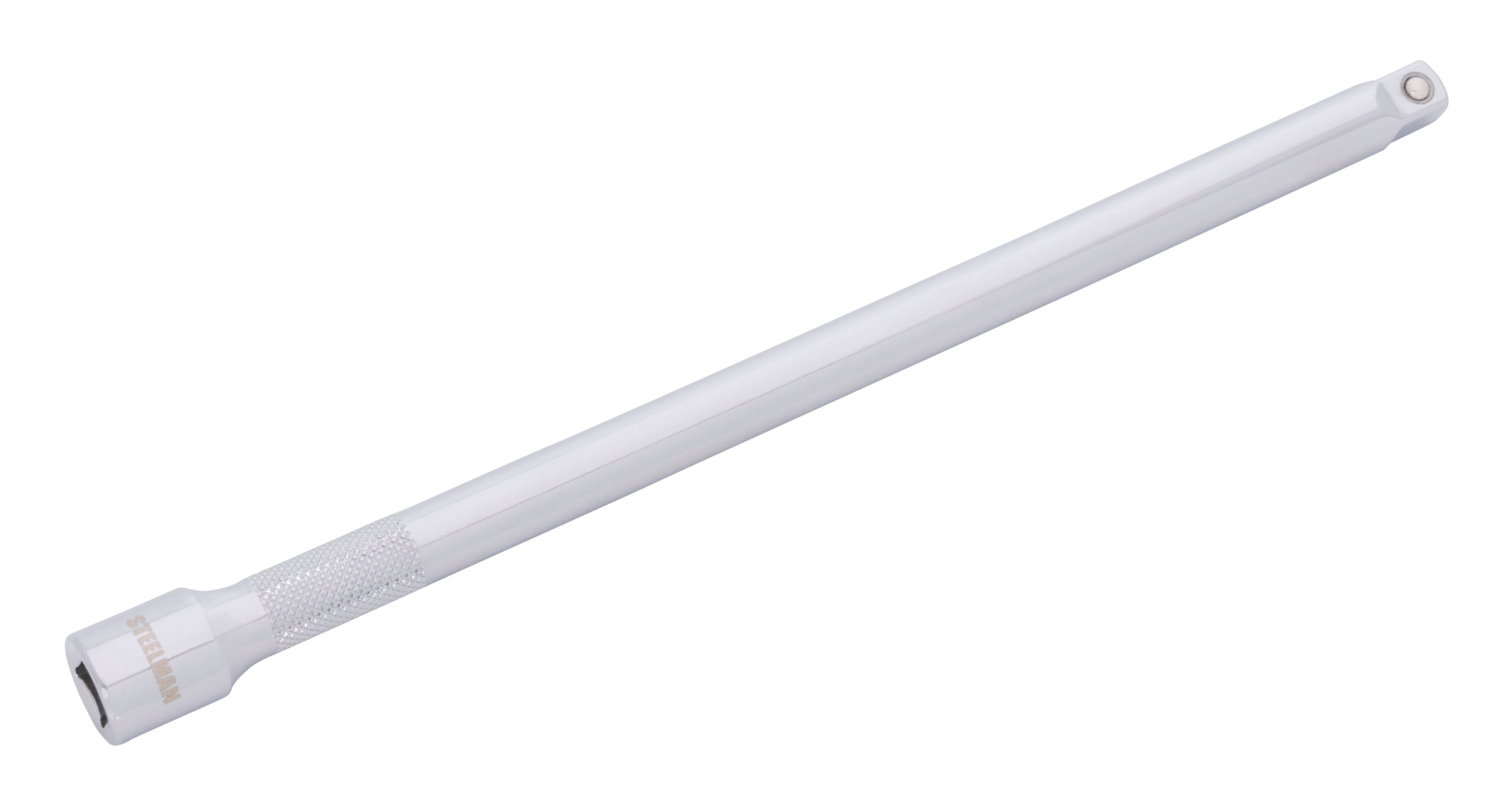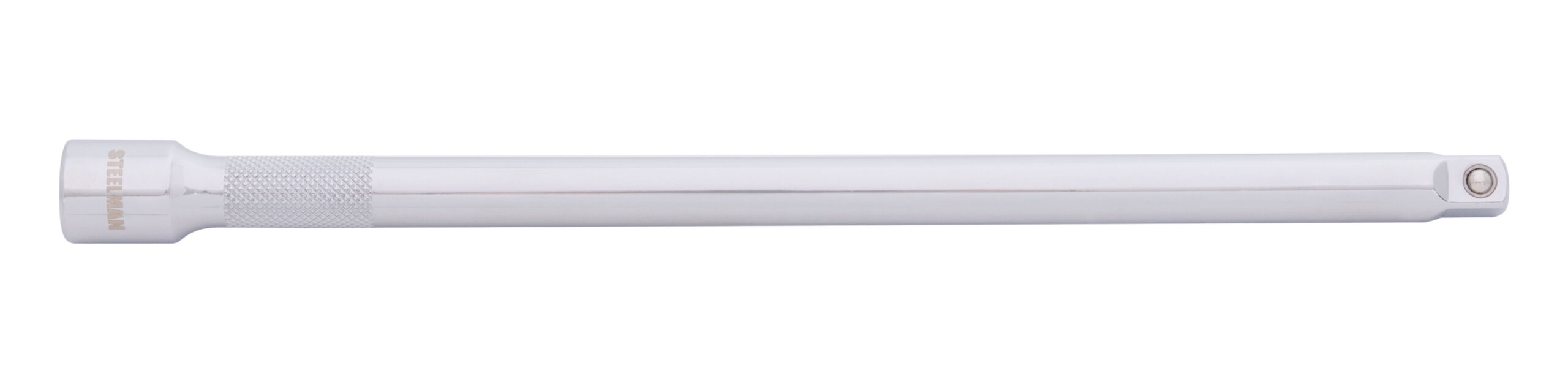 Few things are as aggravating as having to reach in after a nut or bolt and have it be just out of reach but the STEELMAN 78184 3/8-Inch Drive 10-Inch Extension Bar can help. Made to be compatible with any 3/8-inch drive ratchet, torque wrench, adapter, or socket, this tool is made from high strength, heat-treated chrome vanadium steel for long lasting durability. A polished chrome plating provides rust and corrosion resistance in addition to being easy to wipe clean of dirt and grime. The shaft of the extension has a knurled texture to give a secure grip when used to hand start nuts and bolts. The drive end of the extension features a ball detent recess to hold it tightly onto ratchets, breaker bars, torque wrenches, and adapters. The tip of the bar has a spring loaded detent ball to allow it to clip into and securely hold to attached sockets or even other extension bars. Designed to meet or exceed ASME tool standards this extension is covered by a limited lifetime warranty.