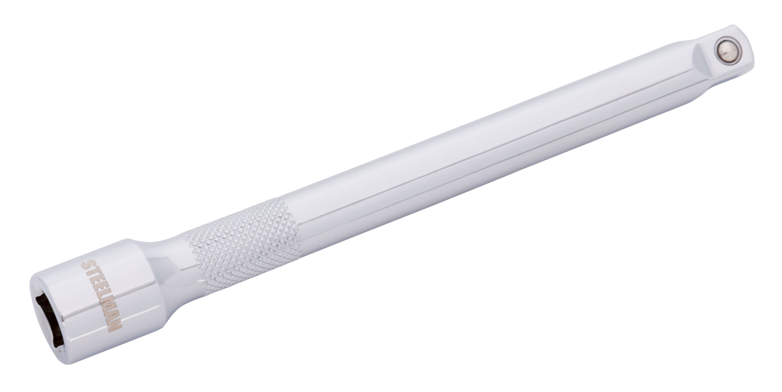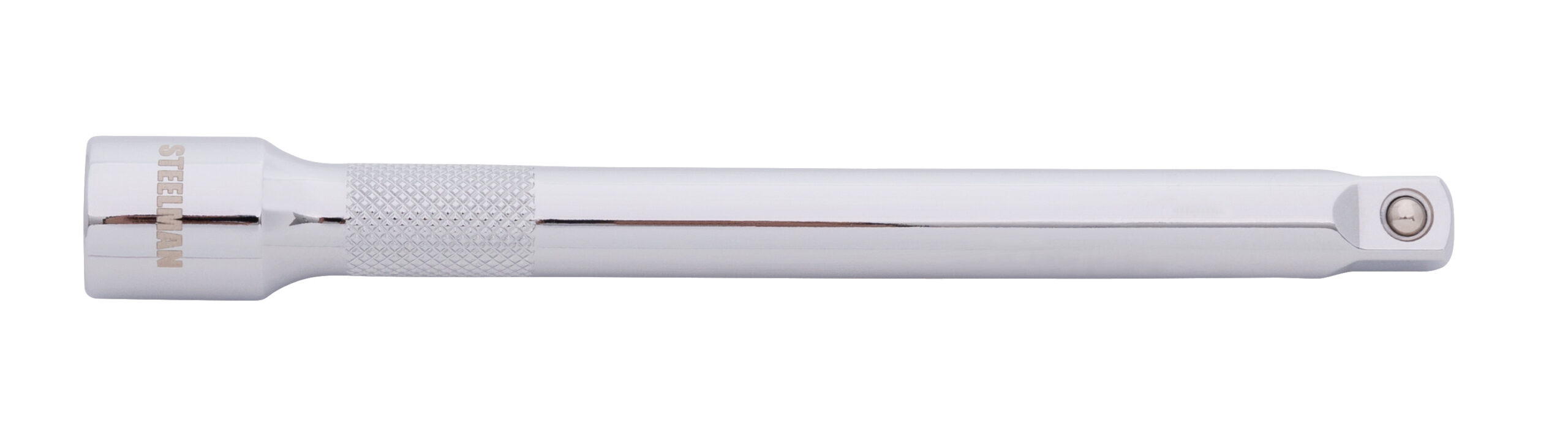 Few things are as aggravating as having to reach in after a nut or bolt and have it be just out of reach but the STEELMAN 78183 3/8-Inch Drive 6-Inch Extension Bar can help. Made to be compatible with any 3/8-inch drive ratchet, torque wrench, adapter, or socket, this tool is made from high strength, heat-treated chrome vanadium steel for long lasting durability. A polished chrome plating provides rust and corrosion resistance in addition to being easy to wipe clean of dirt and grime. The shaft of the extension has a knurled texture to give a secure grip when used to hand start nuts and bolts. The drive end of the extension features a ball detent recess to hold it tightly onto ratchets, breaker bars, torque wrenches, and adapters. The tip of the bar has a spring loaded detent ball to allow it to clip into and securely hold to attached sockets or even other extension bars. Designed to meet or exceed ASME tool standards this extension is covered by a limited lifetime warranty.
