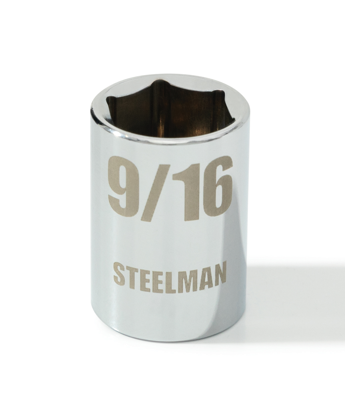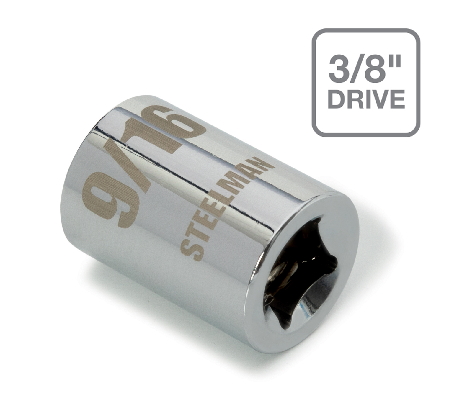 If you need a socket you can depend on, be sure to find a home in your tool box for the STEELMAN 78207 3/8-Inch Drive x 9/16-Inch Shallow 6-Point SAE Socket. Constructed of durable heavy-duty chrome vanadium steel, this socket has the strength required for high torque jobs and will fit onto any 3/8-inch drive ratchet, torque wrench, extension bar, or adapter. The socket features a rust and corrosion resistant high polish chrome finish that not only looks good but is easy to wipe clean of dirt, oil, and grime. The socket’s 6-point design grips the sides of fasteners and not the corners, reducing wear and the chance of slippage or rounding the fastener. Easy to read size markings are laser etched onto the steel making it simple to identify the socket you need without the worry that the markings will wear away or rub off with use. Rated to meet or exceed ANSI / ASME performance requirements for hand tools, this socket can handle tough use, whether it is in professional garage fixing car engines or at home repairing furniture and appliances.