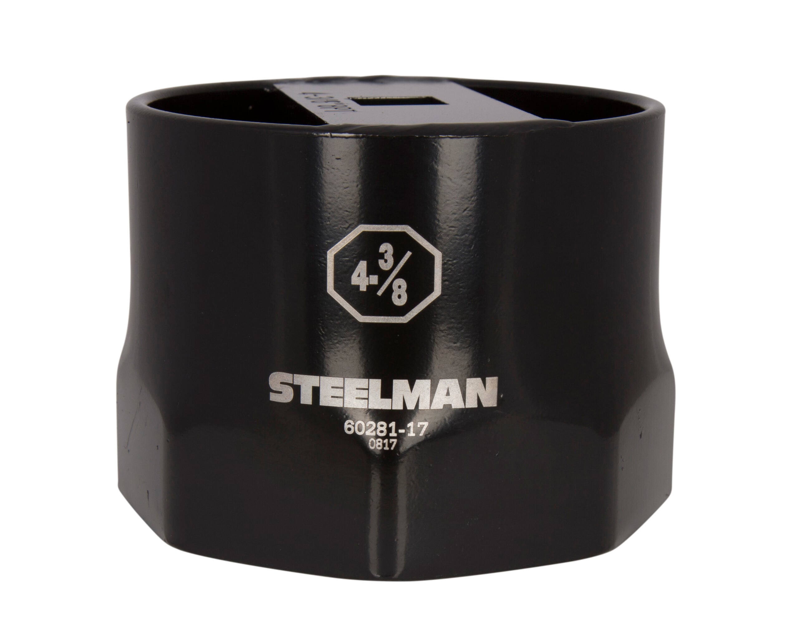 Here to help take the strain out of the arduous task of removing and installing wheel bearing nuts and other large industrial bolts and fasteners is the STEELMAN 60281-17 4-3/8-Inch 8-Point Locknut Socket. Designed in 8-point style, this heavy-duty socket grips the sides of fasteners instead of the corners to reduce the chance of premature fastener wear and rounding. Made of high strength carbon steel for long lasting durability, this tool has an industrial strength black powder coat that won’t easily chip off or fade. Strong and resilient, this socket is constructed to be able to withstand and deliver up to 400 ft-lb of torque to sockets without deforming. Easy to read size callouts and markings are laser etched into the steel and won’t rub off. Socket works with any hand operated 3/4-inch drive ratchet, extension, adapter, or torque wrench. This tool is not intended for use with power or impact wrenches / tools, so MANUAL use only.