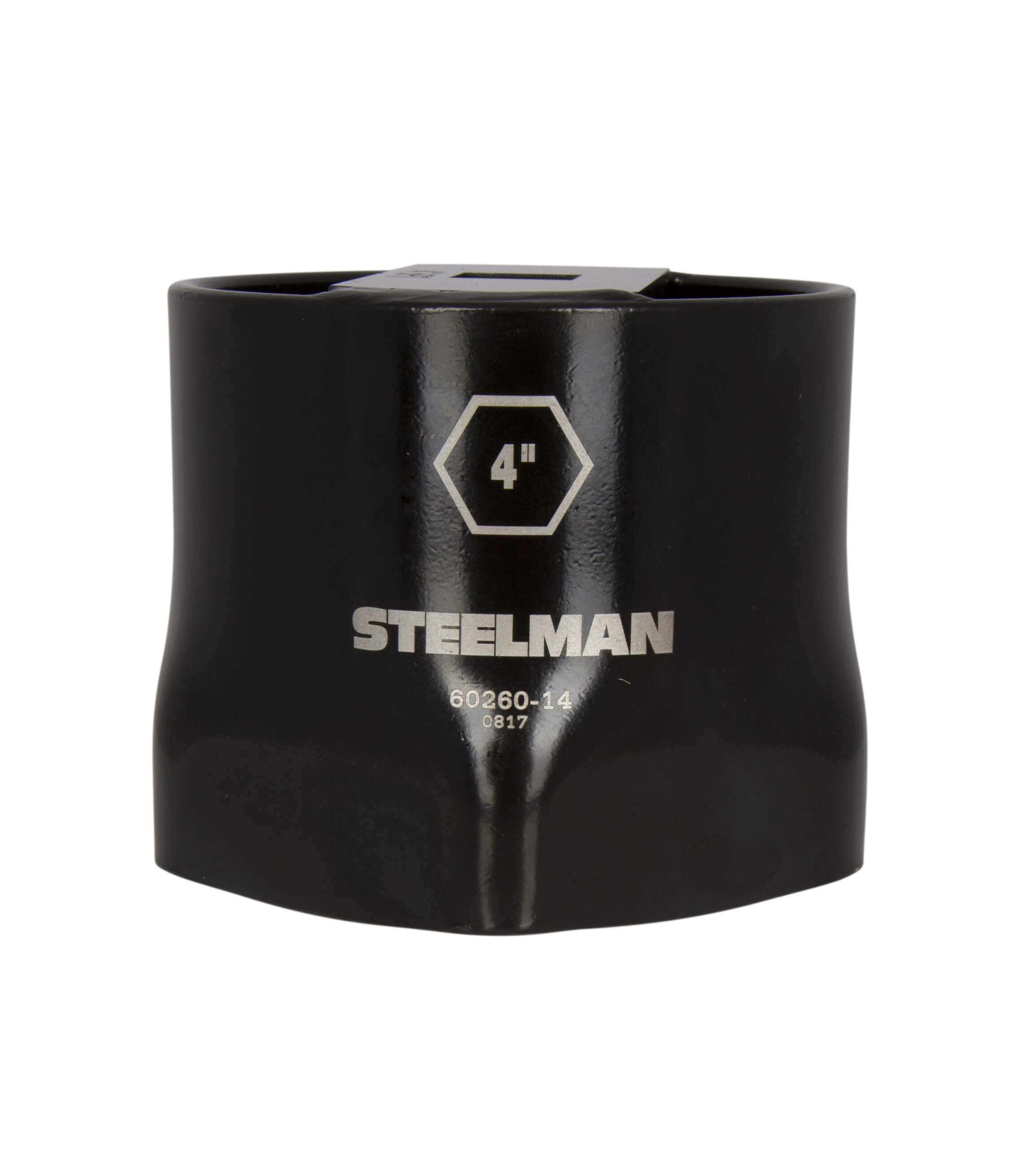 Here to help take the strain out of the arduous task of removing and installing wheel bearing nuts and other large industrial bolts and fasteners is the STEELMAN 60260-14 4-Inch 6-Point Locknut Socket. Designed in 6-point style, this heavy-duty socket grips the sides of fasteners instead of the corners to reduce the chance of premature fastener wear and rounding. Made of high strength carbon steel for long lasting durability, this tool has an industrial strength black powder coat that won’t easily chip off or fade. Strong and resilient, this socket is constructed to be able to withstand and deliver up to 400 ft-lb of torque to sockets without deforming. Easy to read size callouts and markings are laser etched into the steel and won’t rub off. Socket works with any hand operated 3/4-inch drive ratchet, extension, adapter, or torque wrench. This tool is not intended for use with power or impact wrenches / tools, so MANUAL use only.