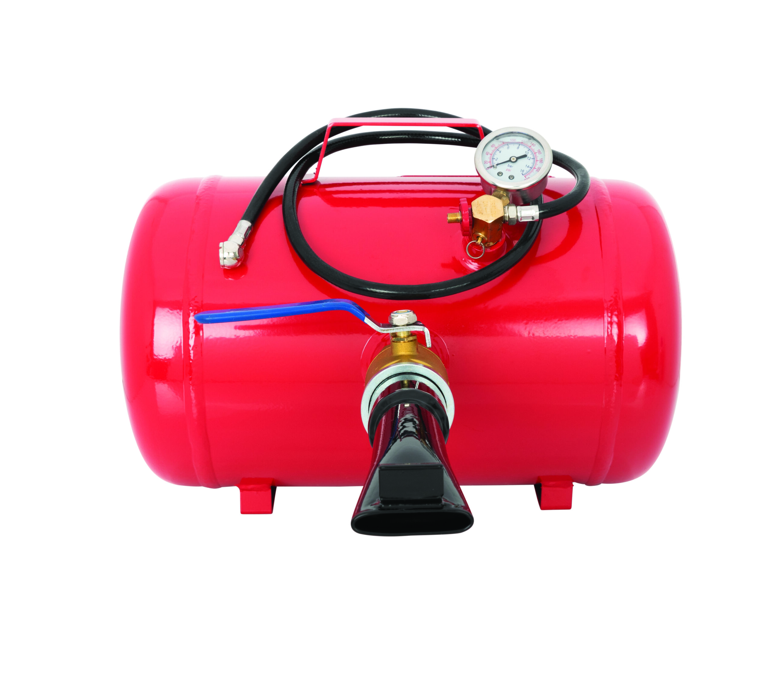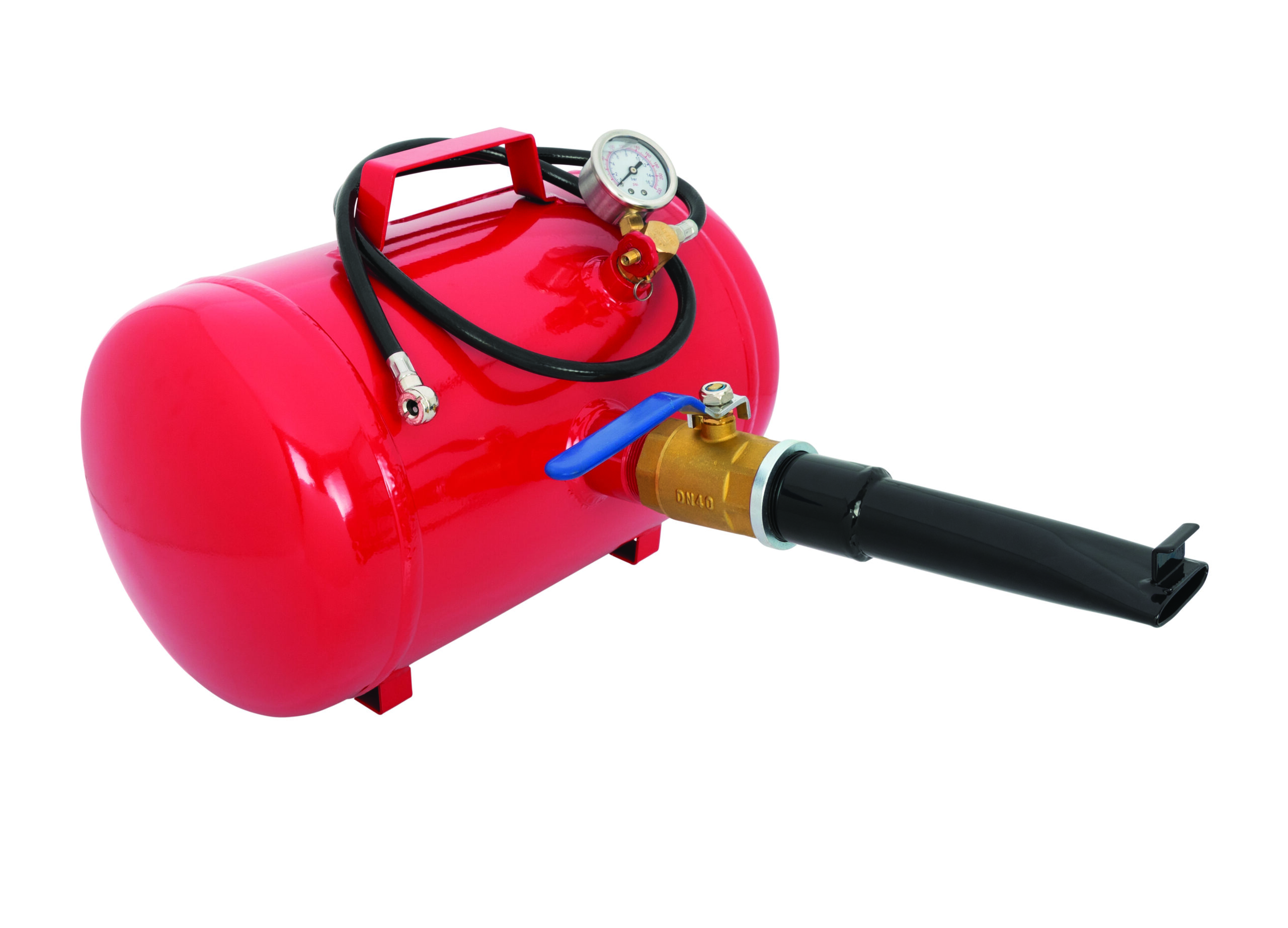 The durable STEELMAN 61116 5-Gallon Combo Bead Seater with Gauge is designed to quickly and efficiently seat tire beads on commercial trucks, passenger vehicles, and other large tires. Constructed from heavy-duty steel, this bead seater features a 5-gallon air tank capable of operating at a maximum pressure of 150 PSI, ensuring powerful air delivery for rapid bead seating. The 1.75-inch nozzle and precision-angled barrel direct airflow precisely into the tire bead gap, helping to create a secure and even seal. A built-in pressure gauge provides real-time readings, while the ball valve trigger mechanism allows for controlled air release. With a sturdy handle for easy transport, this ASME-certified bead seater is a reliable tool for tire shops, fleet maintenance, and professional mechanics.