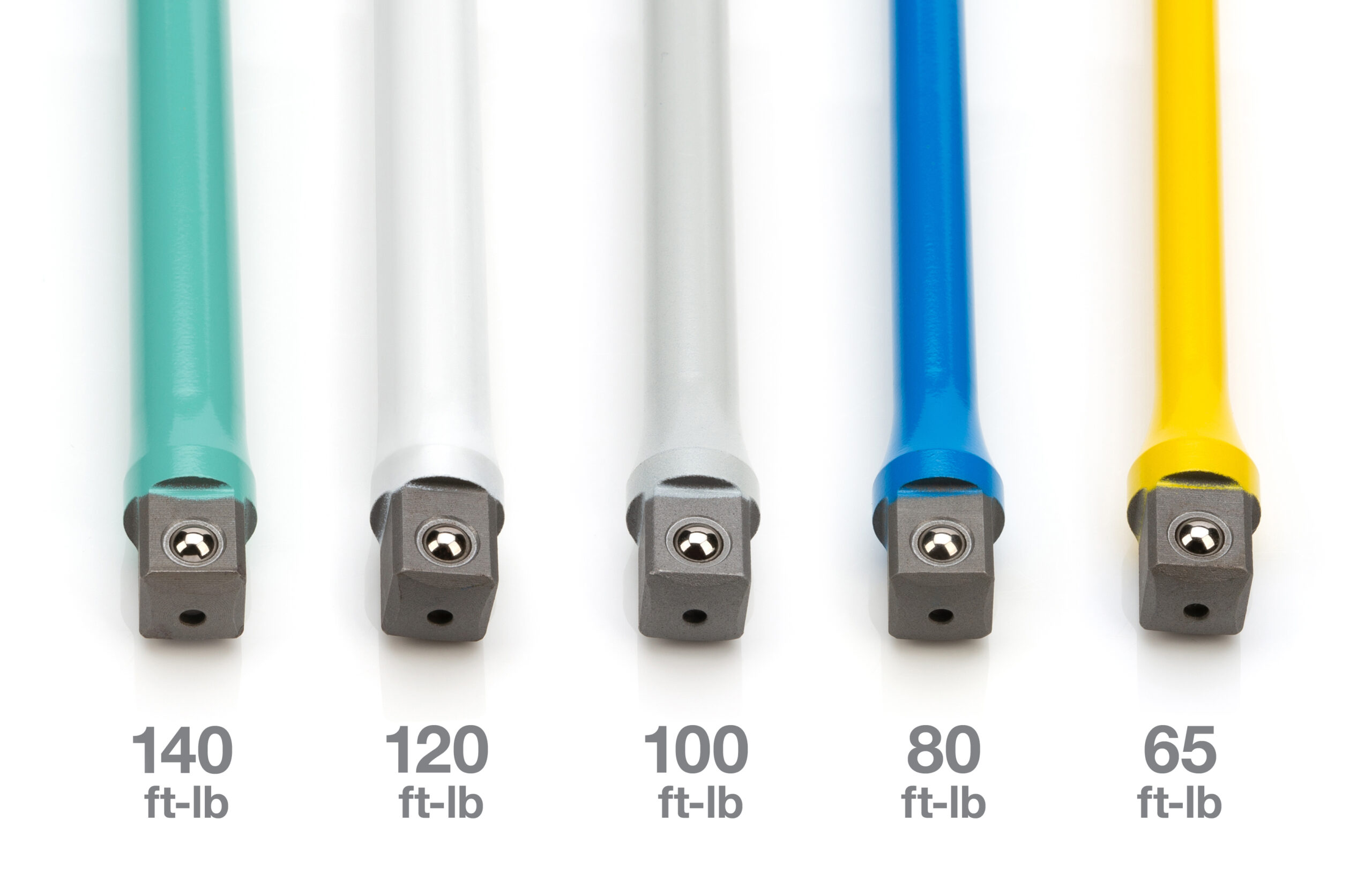 Protect your wheels, wheel studs, and brake rotors with STEELMAN torque extensions. The STEELMAN 50061-5XA 5-Piece 1/2-Inch Drive Torque Extension Set is designed to prevent damage to wheels, studs, and brake rotors by reducing the risk of overtightening lug nuts which can result in sheared stud bolts, rounded lug nuts, and warped rotors. When used with an electric or pneumatic impact wrench these 8-inch extension bars will limit the effective output of the wrench to a preset amount of torque and anything above that will cause the extension to flex and absorb the extra impact. Each torque stick is machined to a specific maximum torque and then color coded for easy identification: yellow at 65ft-lb, blue at 80ft-lb, gray at 100ft-lb, white at 120ft-lb, and aqua at 140ft-lb of torque. These torque sticks are made of resilient chrome molybdenum (Chromoly) steel that are then given their color-coded powder coating for increased corrosion resistance and to make it easy to distinguish them among other tools. Kit includes a convenient blow-molded black storage case.
