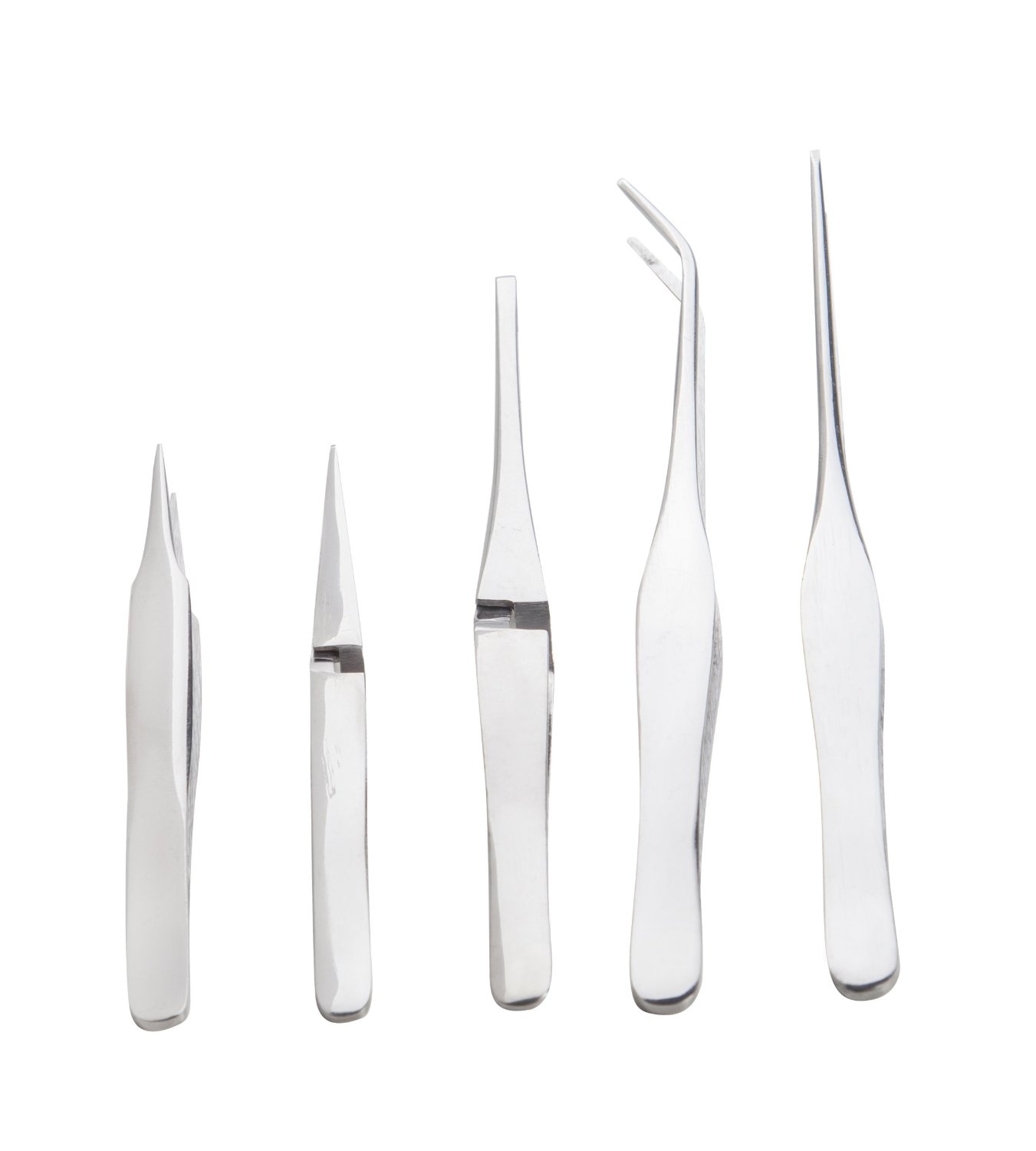 Reach in and get a grip with the STEELMAN 05625 5-Piece Utility and Precision Tweezer Set. Constructed of durable and easy to clean stainless steel this set contains a range of tip and closure styles to help you with a wide variety of precision tasks. Set includes four straight pairs including 7-inch sharp, pointed tip utility,7-inch self-closing heat resistant flat nose, 4.5-inch self-closing sharp point, and 4.5-inch sharp point. Set also includes a specialty tip pair of 7-inch angled utility tweezers with rounded tips. To keep everything organized between uses the kit comes in a convenient vinyl storage pouch. So whether you’re working on a model railroad / ship, doing lab work, or soldering wires and electronics, this kit has a pair that’s perfect for your needs.