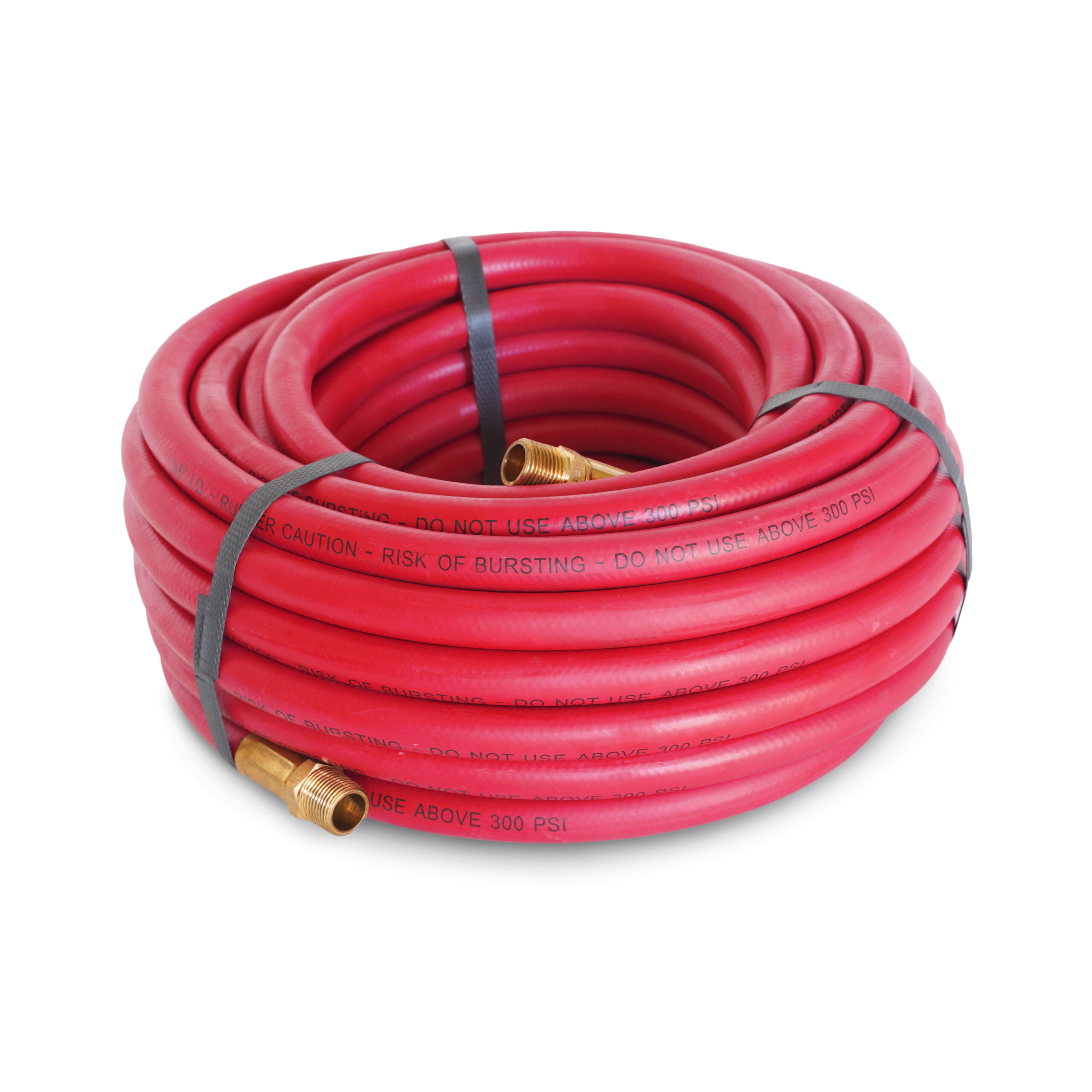 Bring maximum power to your pneumatic tools with the STEELMAN 50050-IND 50-Foot 3/8-Inch ID Rubber Air Hose with 3/8-Inch NPT Brass Fittings. Made of premium, rubber, this hose resists kinking and has excellent abrasion resistance making it perfect for use in workshops and garages with concrete floors. In addition, the hose’s rubber construction is resistant to damage caused by most shop chemicals for a longer working lifespan. Rated for a working pressure of up to 300 PSI, this hose can easily handle normal pneumatic shop tool pressures without fear of unexpected ruptures. The pre-attached brass fittings have 3/8-inch NPT male threads for easy attachment to additional hoses, adapters, and connectors or as a replacement for a reel mounted hose.