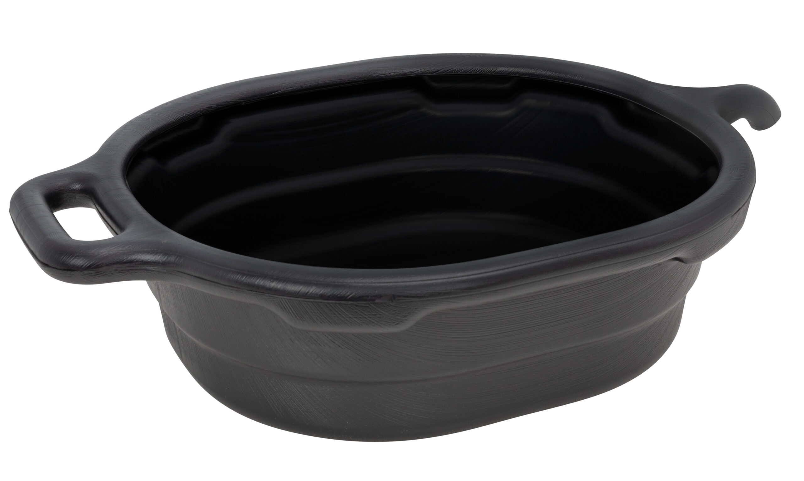 Make catching oil and automotive fluids when draining them or performing a system flush as well as disposal of those fluids a little bit easier with this 18-quart open top drain pan. This durable polymer plastic drain pan features a wide 15.5-inch lidless mouth that helps you more easily place the pan under vehicles with less need for precision placement. The main storage compartment is designed to hold up to 18-quarts / 4.5-gallons of drained oil or other automotive fluids. When draining is over, the pan features several molded in handles for easier carrying as well as a molded in pour spout to make disposal into larger, more permanent containers easier. Pan measures 22.5-inches long x 18.5-inches wide x 6.5-inches high.