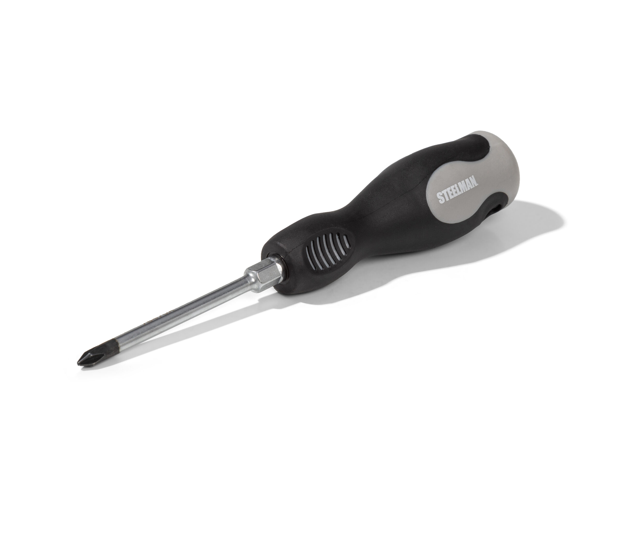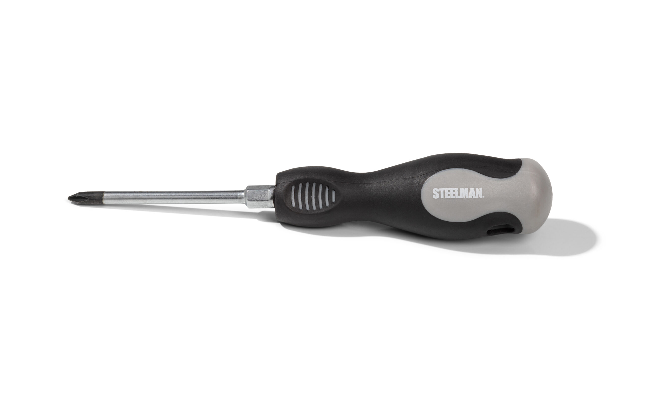 The STEELMAN 78470A PH1 x 3-Inch Philips Tip Screwdriver with Comfort Grip Handle and Hex Bolster is a general-purpose screwdriver designed to handle the toughest jobs you find yourself facing. The durable shaft is made from long-lasting chrome-vanadium steel that has a high polish chrome finish that wipes easily clean from oil, grease, and other grime. The PH1 size Philips head tip is coated with a protective black oxide coating which adds increased grip in fasteners and won’t chip or flake off like plated tips. The 3-inch long shaft provides convenient reach when working on the surface as well as recessed fasteners. When encountering particularly stubborn fasteners, the shaft section next to the handle features a hex-shaped bolster that allows you to use an open-end or crescent wrench for added rotational torque. The dual-layer, rubber padded handle provides a comfortable grip, allowing for a longer work time with less strain on your hands. So whether it’s fixing cabinets, lighting fixtures, and other household repairs or working on cars and trucks in the garage, let STEELMAN help you get the job done.