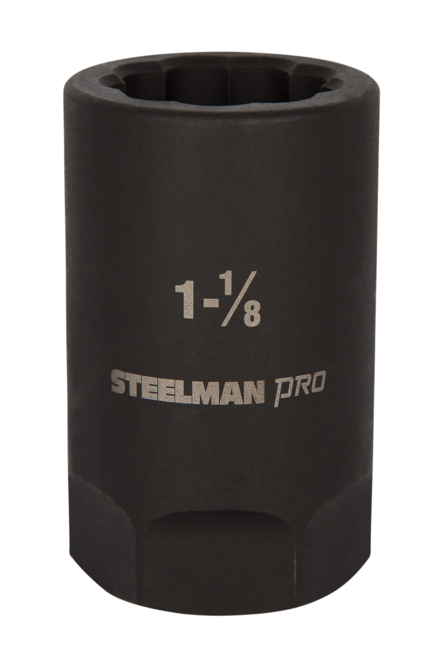 Easily remove rounded and damaged dual and Budd wheel inner post caps with the STEELMAN PRO 79366 1-1/8-Inch Dual and Budd Wheel Inner Cap Remover. Constructed of hardened chromoly (CrMo) alloy steel for lasting strength and durability, this tool can hold up to repeated use with electric and pneumatic / air powered impact wrenches. The protective black phosphate coating provides rust and corrosion resistance. This tool features a series of teeth on the interior surface that grip and bite into damaged rib nuts and inner caps to remove them when other tools can’t get a secure grip.