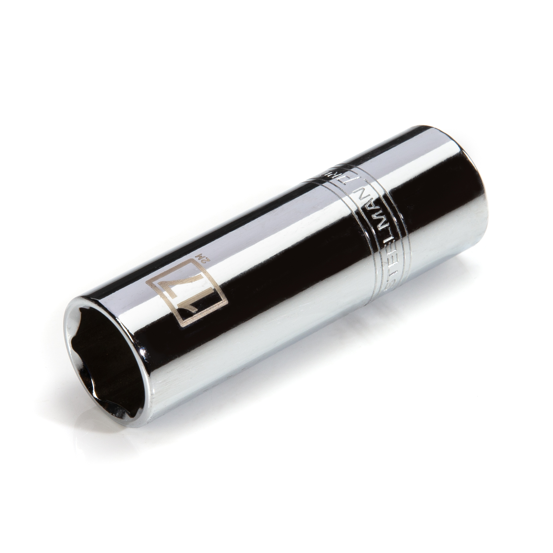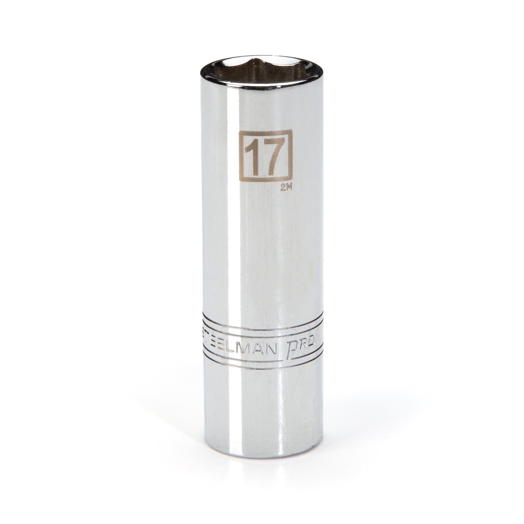 If you need a socket you can depend on, be sure to find a home in your toolbox for the STEELMAN PRO 78448 1/2-Inch Drive x 17mm Deep 6-Point Socket. Constructed of heavy-duty heat-treated chrome vanadium steel, this metric socket has the strength required for high torque jobs and will fit onto any 1/2-inch drive ratchet, torque wrench, extension, breaker bar or adapter. The socket features a rust and corrosion-resistant high polish chrome finish that not only looks good but is easy to wipe clean of dirt, oil, and grime. The socket’s 6-point design grips the sides of fasteners and not the corners, reducing wear and the chance of slippage or rounding the fastener. The deep well design also allows the socket to more easily access recessed nuts as well as those mounted to extended bolt studs. Easy-to-read size markings are laser etched onto the steel making it simple to identify the socket you need without the worry that the markings will wear away or rub off with use. Rated to meet or exceed ANSI / ASME performance requirements for hand tools, this socket can handle tough use, whether it is in the professional garage fixing car engines or at home repairing furniture and appliances.