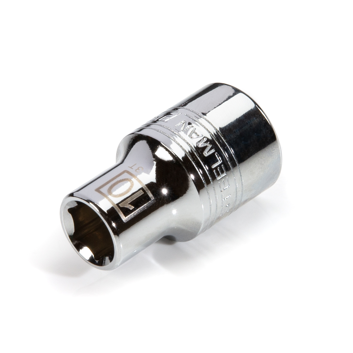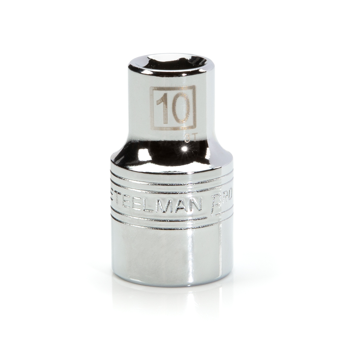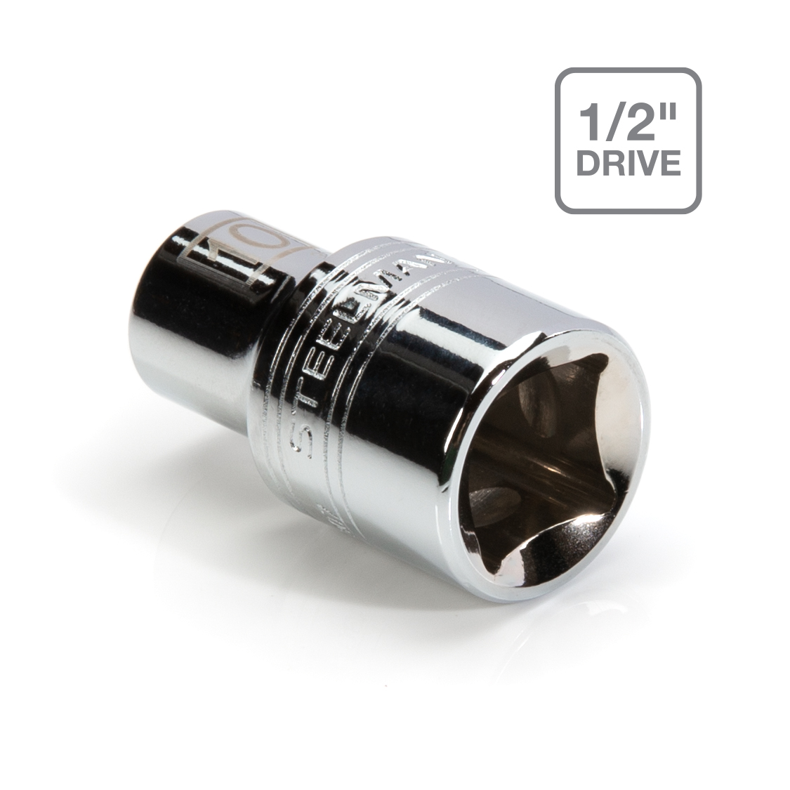 If you need a socket you can depend on, be sure to find a home in your tool box for the STEELMAN PRO 78307 1/2-Inch Drive x 10mm 6-Point Metric Socket. Constructed of heavy-duty heat-treated chrome vanadium steel, this shallow access socket has the strength required for high torque jobs and will fit onto any 1/2-inch drive ratchet, torque wrench, extension bar, or adapter. The socket features a rust and corrosion resistant high polish chrome finish that not only looks good but is easy to wipe clean of dirt, oil, and grime. The socket’s 6-point design grips the sides of fasteners and not the corners, reducing wear and the chance of slippage or rounding the fastener. Easy to read size markings are laser etched onto the steel making it simple to identify the socket you need without the worry that the markings will wear away or rub off with use. Rated to meet or exceed ANSI / ASME performance requirements for hand tools, this socket can handle tough use, whether it is in professional garage fixing car engines or at home repairing furniture and appliances.