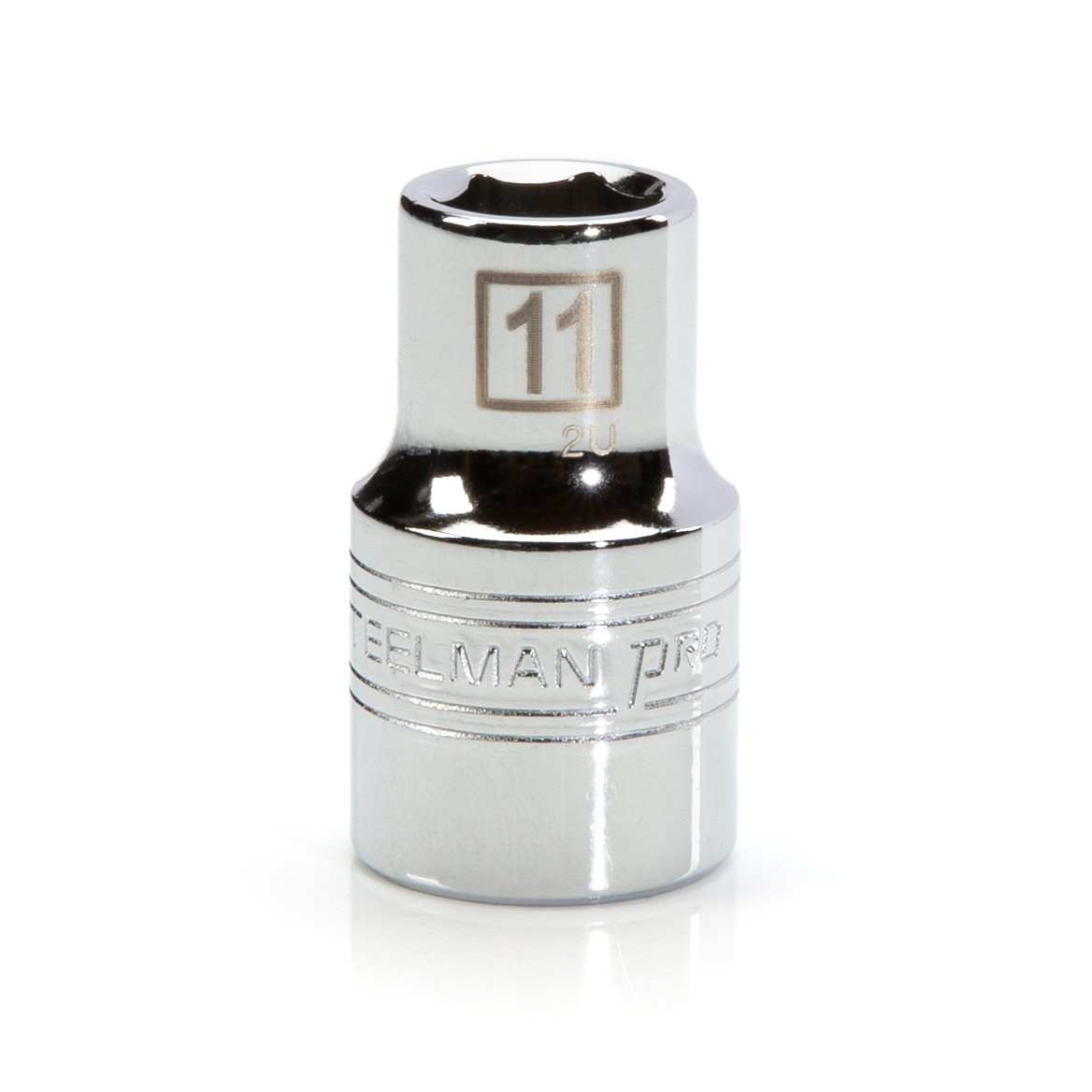 If you need a socket you can depend on, be sure to find a home in your tool box for the STEELMAN PRO 78308 1/2-Inch Drive x 11mm 6-Point Metric Socket. Constructed of heavy-duty heat-treated chrome vanadium steel, this shallow access socket has the strength required for high torque jobs and will fit onto any 1/2-inch drive ratchet, torque wrench, extension bar, or adapter. The socket features a rust and corrosion resistant high polish chrome finish that not only looks good but is easy to wipe clean of dirt, oil, and grime. The socket’s 6-point design grips the sides of fasteners and not the corners, reducing wear and the chance of slippage or rounding the fastener. Easy to read size markings are laser etched onto the steel making it simple to identify the socket you need without the worry that the markings will wear away or rub off with use. Rated to meet or exceed ANSI / ASME performance requirements for hand tools, this socket can handle tough use, whether it is in professional garage fixing car engines or at home repairing furniture and appliances.