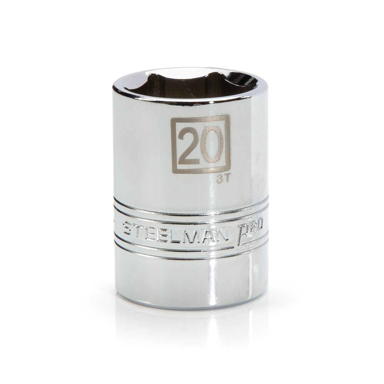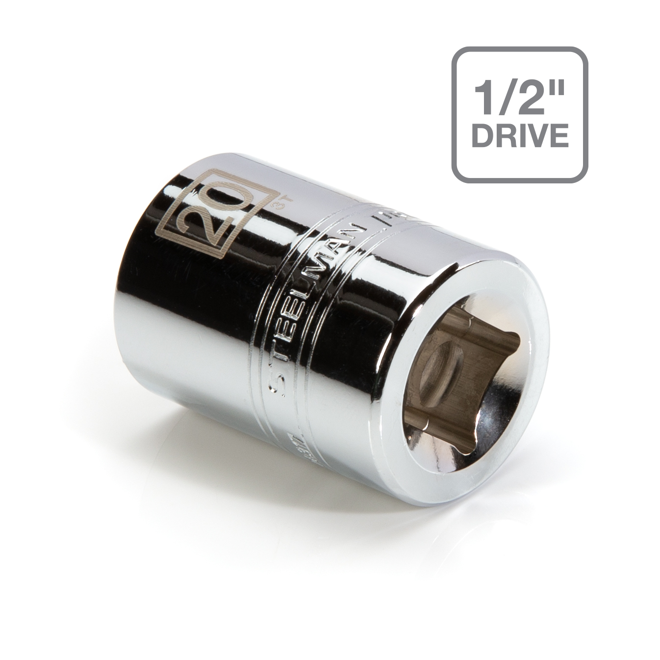 If you need a socket you can depend on, be sure to find a home in your tool box for the STEELMAN PRO 78317 1/2-Inch Drive x 20mm 6-Point Metric Socket. Constructed of heavy-duty heat-treated chrome vanadium steel, this shallow access socket has the strength required for high torque jobs and will fit onto any 1/2-inch drive ratchet, torque wrench, extension bar, or adapter. The socket features a rust and corrosion resistant high polish chrome finish that not only looks good but is easy to wipe clean of dirt, oil, and grime. The socket’s 6-point design grips the sides of fasteners and not the corners, reducing wear and the chance of slippage or rounding the fastener. Easy to read size markings are laser etched onto the steel making it simple to identify the socket you need without the worry that the markings will wear away or rub off with use. Rated to meet or exceed ANSI / ASME performance requirements for hand tools, this socket can handle tough use, whether it is in professional garage fixing car engines or at home repairing furniture and appliances.