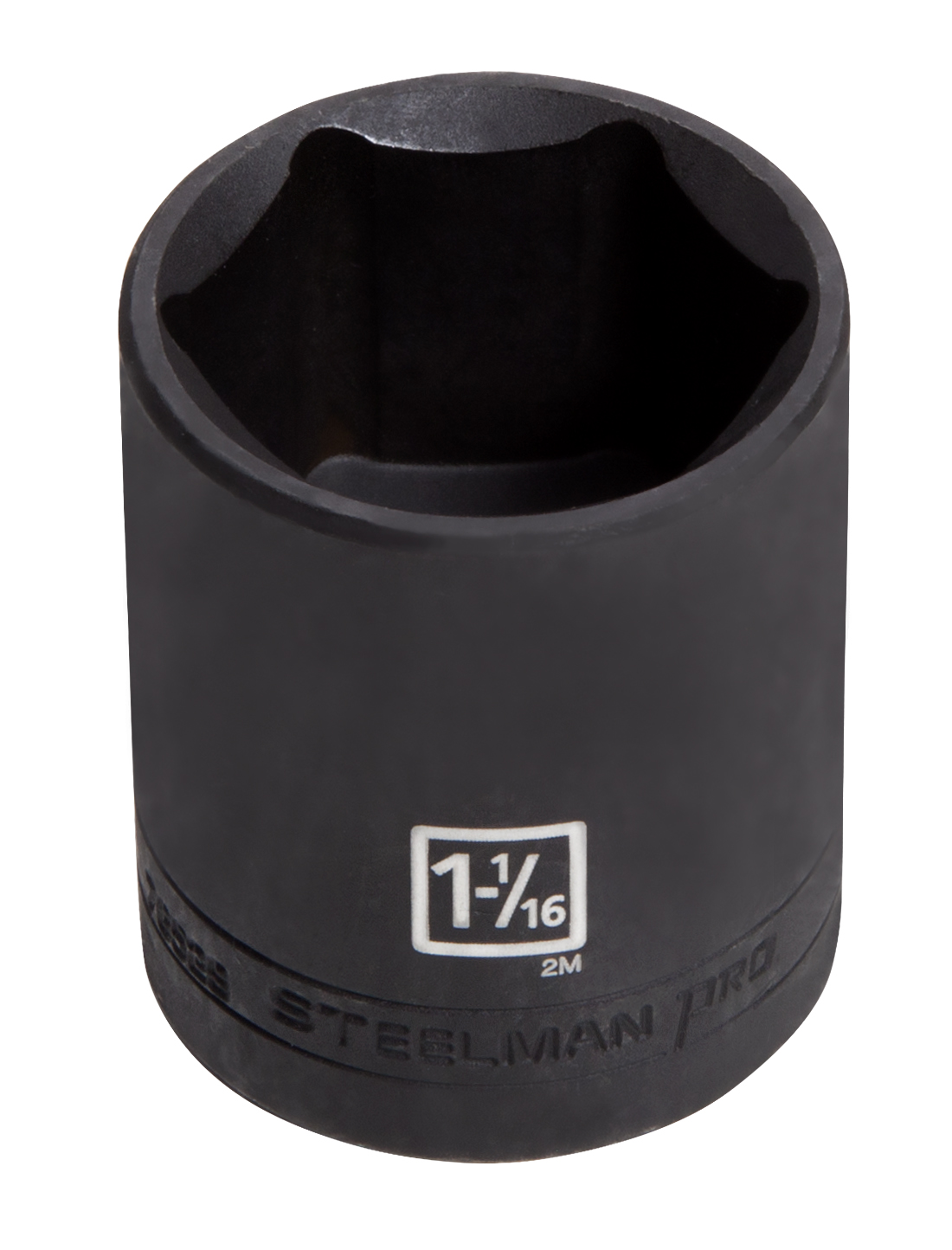 Having reliable and dependable tools can make any mechanic’s or maintenance engineer’s life easier, so be sure to find a home in your tool box for the STEELMAN PRO 78529 1/2-Inch Drive x 1-1/16-Inch Thin-Wall 6-Point Impact SAE Socket. Constructed of durable and heavy-duty chrome vanadium (CrV) steel, this deep access socket has the strength required for high torque jobs and will fit onto any 1/2-inch drive electric or pneumatic impact wrench, hand ratchet, torque wrench, extension bar, or adapter. With its thin-walled design, this socket can even access fasteners in tight spaces too narrow for standard, thick walled sockets to reach. This socket features a rust and corrosion resistant black oxide protective finish. The socket’s 6-point design grips the sides of fasteners and not the corners, reducing wear and the chance of slippage or rounding the fastener. Easy to read size markings are laser etched onto the steel making it simple to identify the socket without the worry that the markings will wear away or rub off with use. Rated to meet or exceed ANSI / ASME performance requirements for hand tools, these can handle tough use in any professional or home shop / garage.