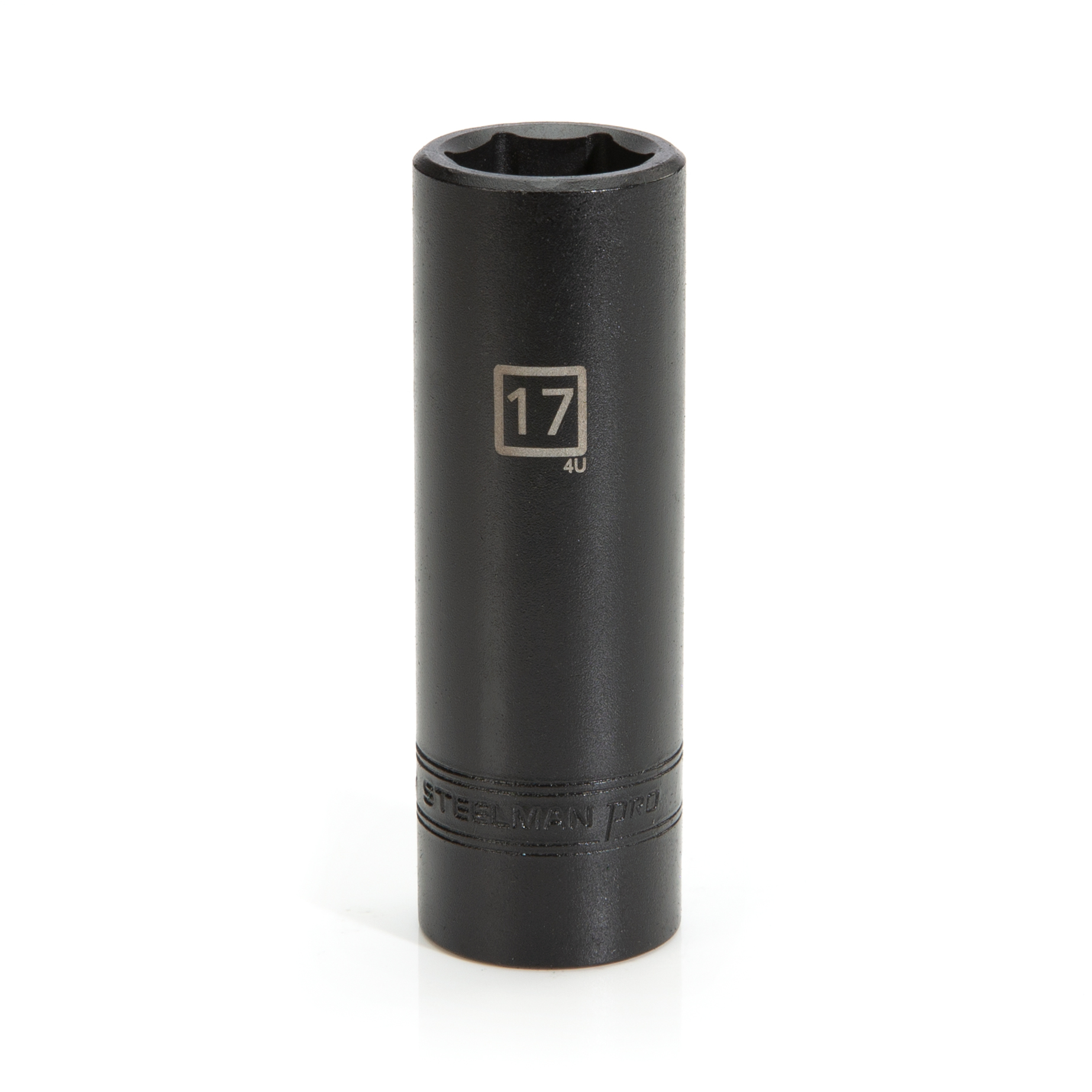 Having reliable and dependable tools can make any mechanic’s or maintenance engineer’s life easier, so be sure to find a home in your tool box for the STEELMAN PRO 78287 1/2-Inch Drive x 17mm Deep 6-Point Impact Metric Socket. Constructed of durable and heavy-duty chrome vanadium steel, this socket has the strength required for high torque jobs and will fit onto any 1/2-inch drive electric or pneumatic impact wrench, ratchet, torque wrench, extension bar, or adapter. This socket features a rust and corrosion resistant black oxide protective finish and its deep well design allows it to access fasteners in slight recesses without an extension bar as well as nuts on extended bolts. The socket’s 6-point design grips the sides of fasteners and not the corners, reducing wear and the chance of slippage or rounding the fastener. A ball detent recess on the base of the socket holds it securely to attached tools to allow for use at any angle. Easy to read size markings are laser etched onto the steel making it simple to identify the socket without the worry that the markings will wear away or rub off with use. Rated to meet or exceed ANSI / ASME performance requirements for hand tools, these can handle tough use in any professional or home shop / garage.