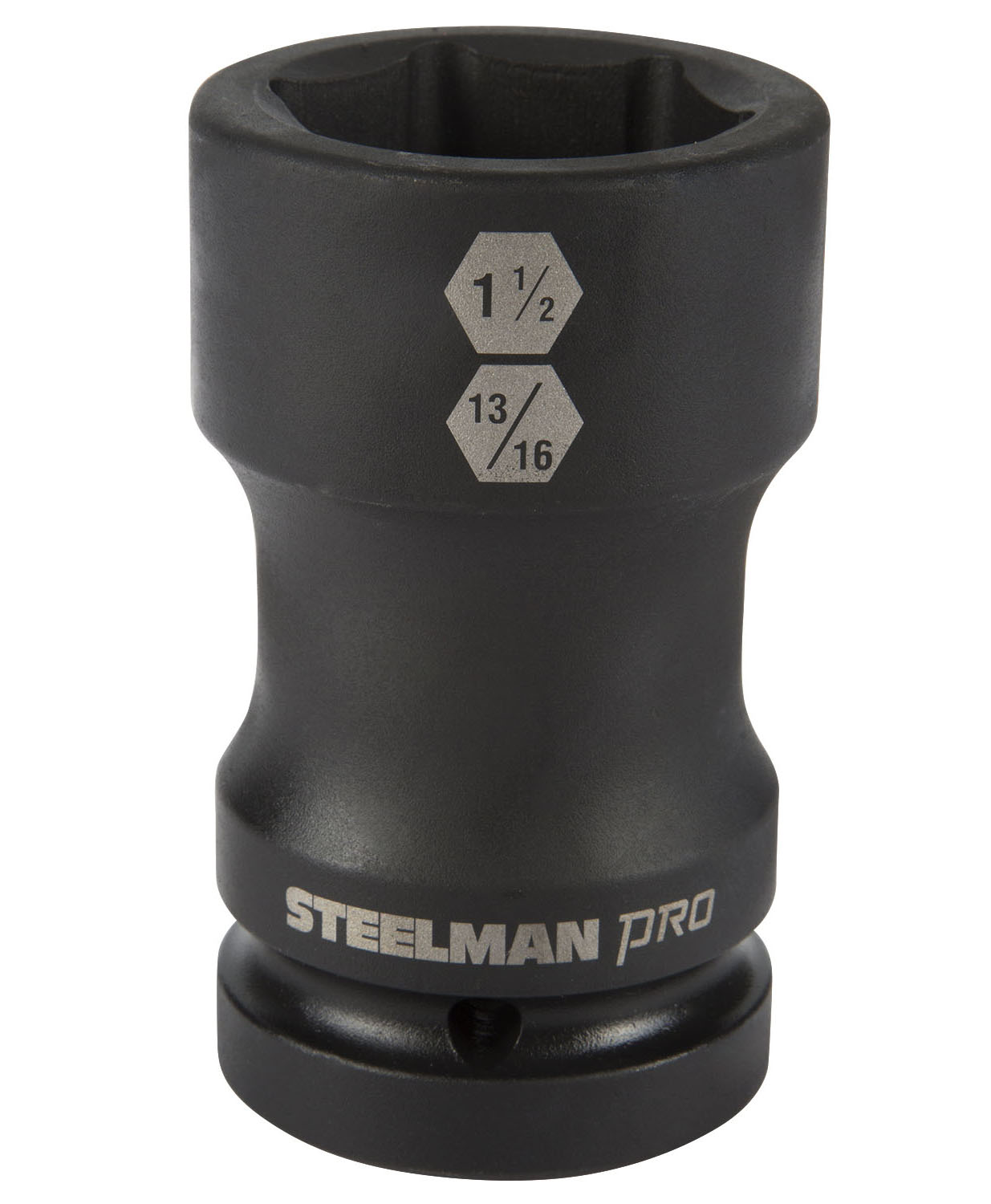 Every mechanic knows that having a reliable set of tools can make your life easier when working on heavy-duty vehicles and equipment. The STEELMAN PRO 79325 1-Inch Drive Budd Wheel 1-1/2-Inch 6-Point Hex x 13/16-Inch 4-Point Square Combo Impact Socket is specially designed to help speed up wheel servicing on large trucks, tractor trailers, buses, and other vehicles using Budd Wheels. The combination 6-point hex and recessed 4-point square socket performs double duty, fitting both lug nuts and studs, removing the necessity of changing sockets halfway through the job. Made from drop forged and heat treated chromoly steel, this socket features a ball detent recess on the 1-inch drive end to help hold it securely onto ratchets, air wrenches, adapters, and extensions. The socket features a rust and corrosion resistant black phosphate protective coating with laser etched size callouts and markings. Rated to withstand up to 150% of ASME torque requirements for impact tools, can handle tough use in any professional shop / garage, home workshop, or on the work site.