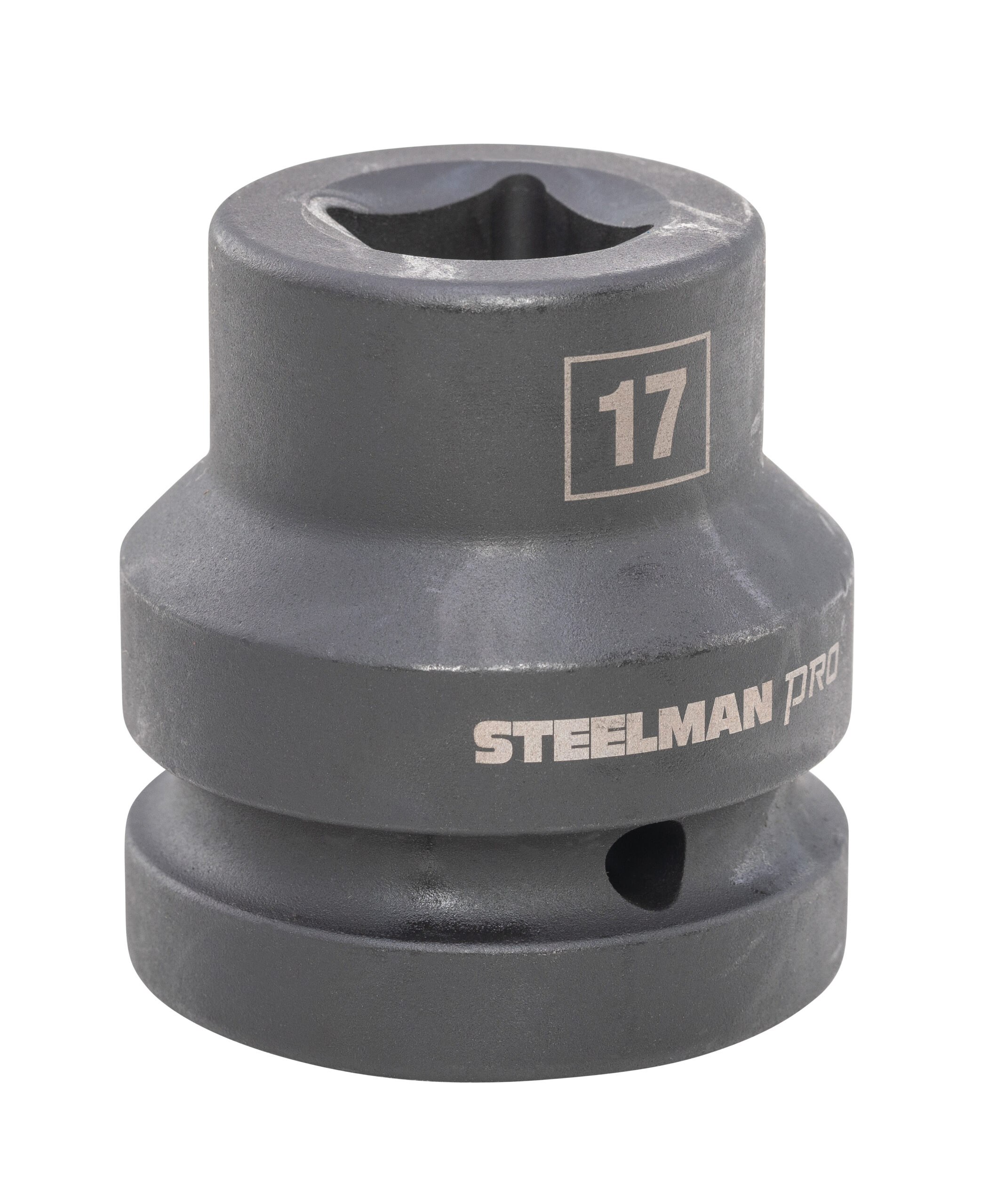 Every mechanic knows that having a reliable set of tools can make your life easier when working on heavy-duty vehicles and equipment. The STEELMAN PRO 60557 1-Inch Drive x 17mm 4-Point Square Budd Impact Socket is ideal for use servicing large trucks, tractor trailers, buses, and other vehicles that use Budd Wheels in addition to working on construction projects and industrial equipment that utilized 4-point fasteners. Made from thick and durable chromoly steel, this metric socket features a through hole and groove on the base to allow use of retaining rings and pins on the 1-inch drive end to hold it securely onto air wrenches, adapters, and extensions. The square, 4-point shape grips the sides of fasteners and not the corners, reducing wear and the chance of rounding the fastener and the deep well design allows easy reach of nuts on extended threads and recessed bolts. The socket features a rust and corrosion resistant black phosphate protective coating with laser etched size callouts and markings. Rated to withstand up to 150% of ASME torque requirements for impact tools, this socket can handle tough use in any professional shop / garage, home workshop, or on the work site.
