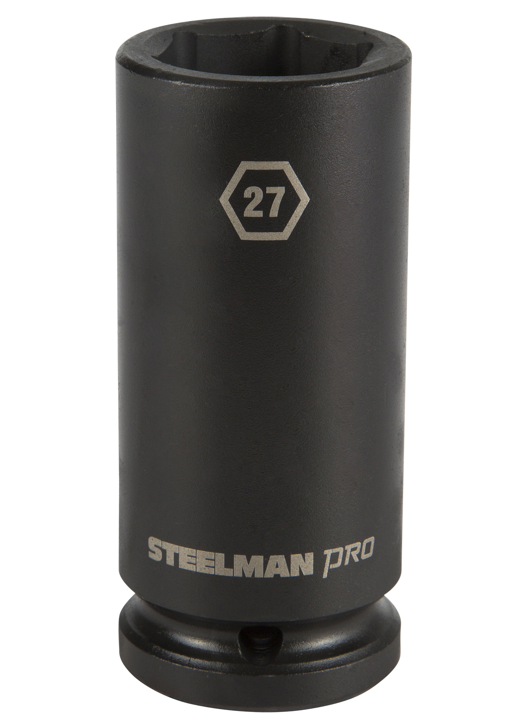 Every mechanic knows that having a reliable set of tools can make your life easier when working on heavy-duty vehicles and equipment. The STEELMAN PRO 79259 3/4-Inch Drive 6-Point 27mm Deep Impact Socket is ideal for use in performing maintenance, repairs and service on large trucks and tractor trailers, farming equipment and tractors, oilfield and construction equipment, and mass transit vehicles. Made from drop forged and heat treated chromoly steel, this socket features a ball detent recess on the 3/4-inch drive end to help hold it securely onto ratchets, air wrenches, adapters, and extensions. The 6-point shape grips the sides of fasteners and not the corners, reducing wear and the chance of rounding the fastener and the deep well design allows easy reach of nuts on extended threads and recessed bolts. The socket features a rust and corrosion resistant black phosphate protective coating with laser etched size callouts and markings. Rated to withstand up to 150% of ASME torque requirements for impact tools, this socket can handle tough use in any professional shop / garage, home workshop, or on the work site.